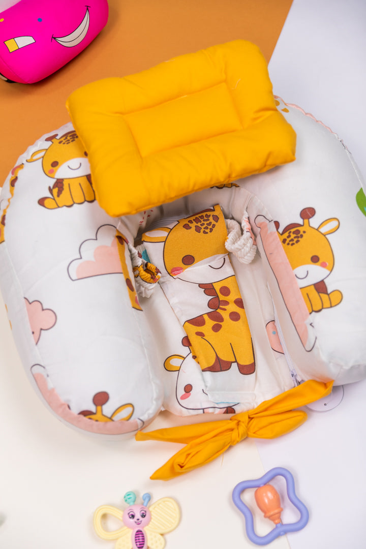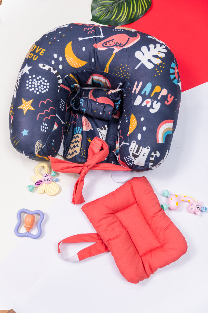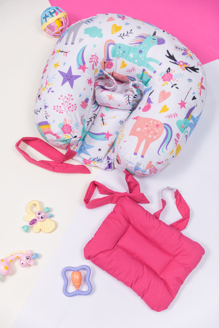 The baby sitting support helps your little one sit safely and comfortably, paired with a nursing pillow that provides support for both mom and baby during feeding. A practical and cozy duo for everyday use.