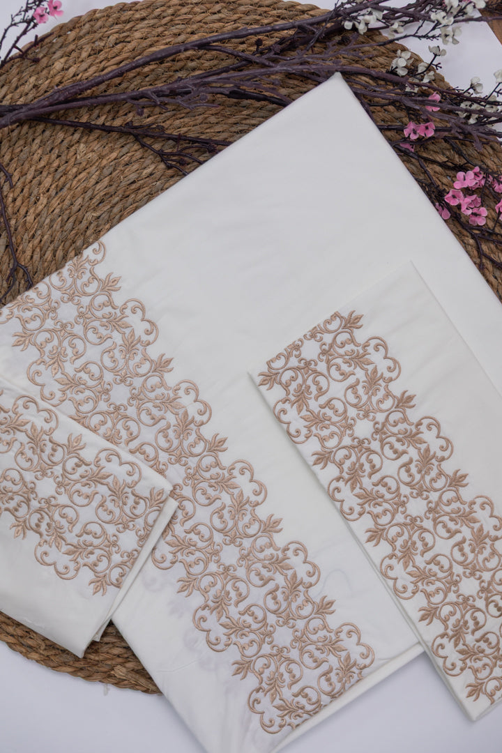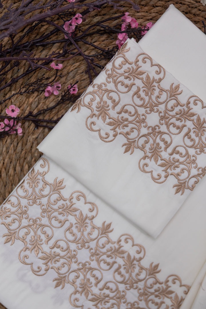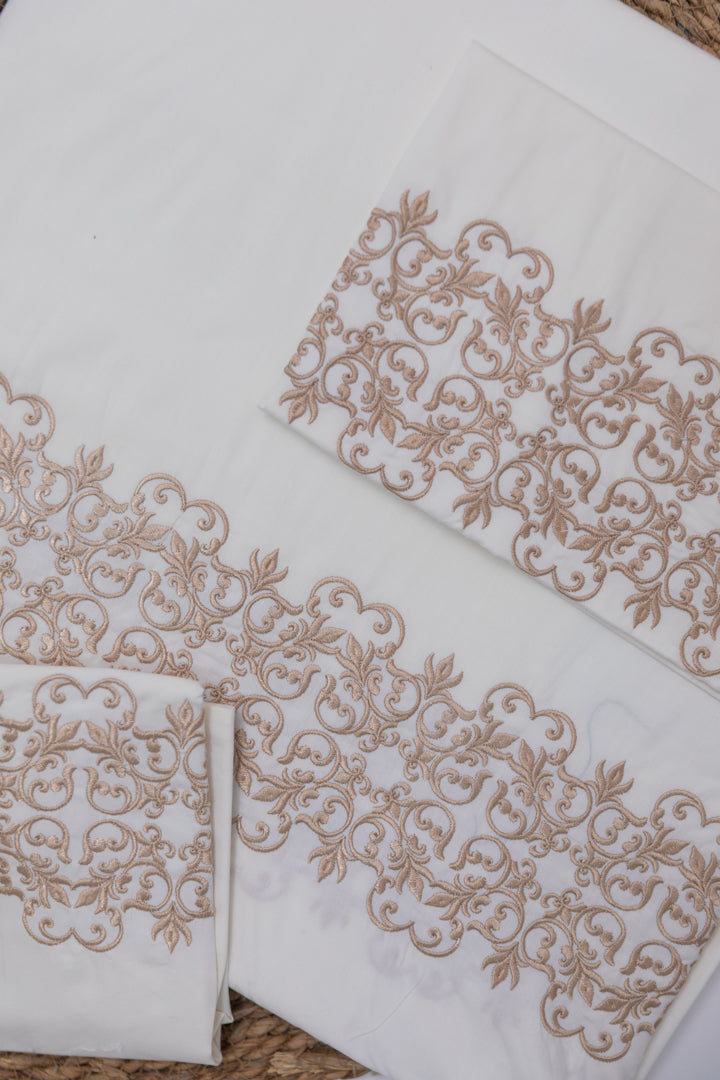 اختبر أقصى درجات النعومة والرقي مع ملاية سرير بيلا نوتي المصنوعة من قطن البركاله الفاخر لتمنحك راحة لا مثيل لها وتهوية مثالية أثناء النوم. يتميز قماشها الخفيف بملمس حريري ناعم يعزز نومًا مريحًا وهادئًا، فيما تضيف خيوط التطريز الحريرية الدقيقة لمسة من الفخامة الكلاسيكية. صُممت خصيصًا لعشاق التفاصيل الراقية، حيث تجمع هذه الملاية القطنية بين المتانة والأناقة وسهولة العناية، لتبقى غرفة نومك أنيقة ومريحة ليلة بعد ليلة.