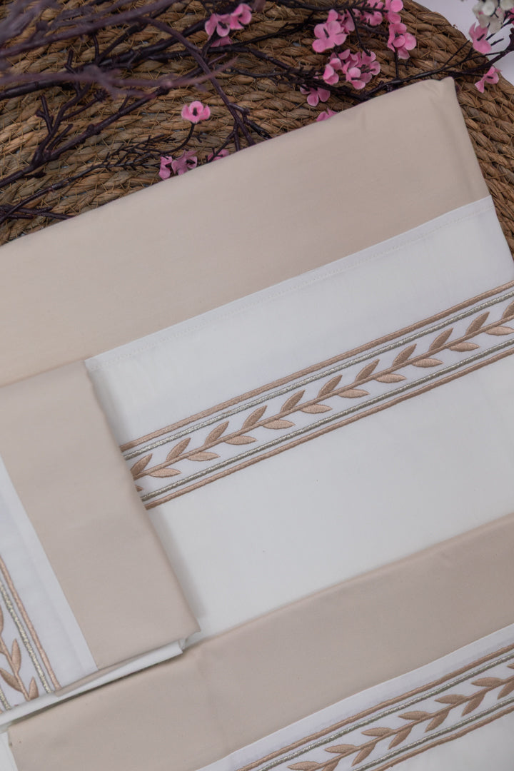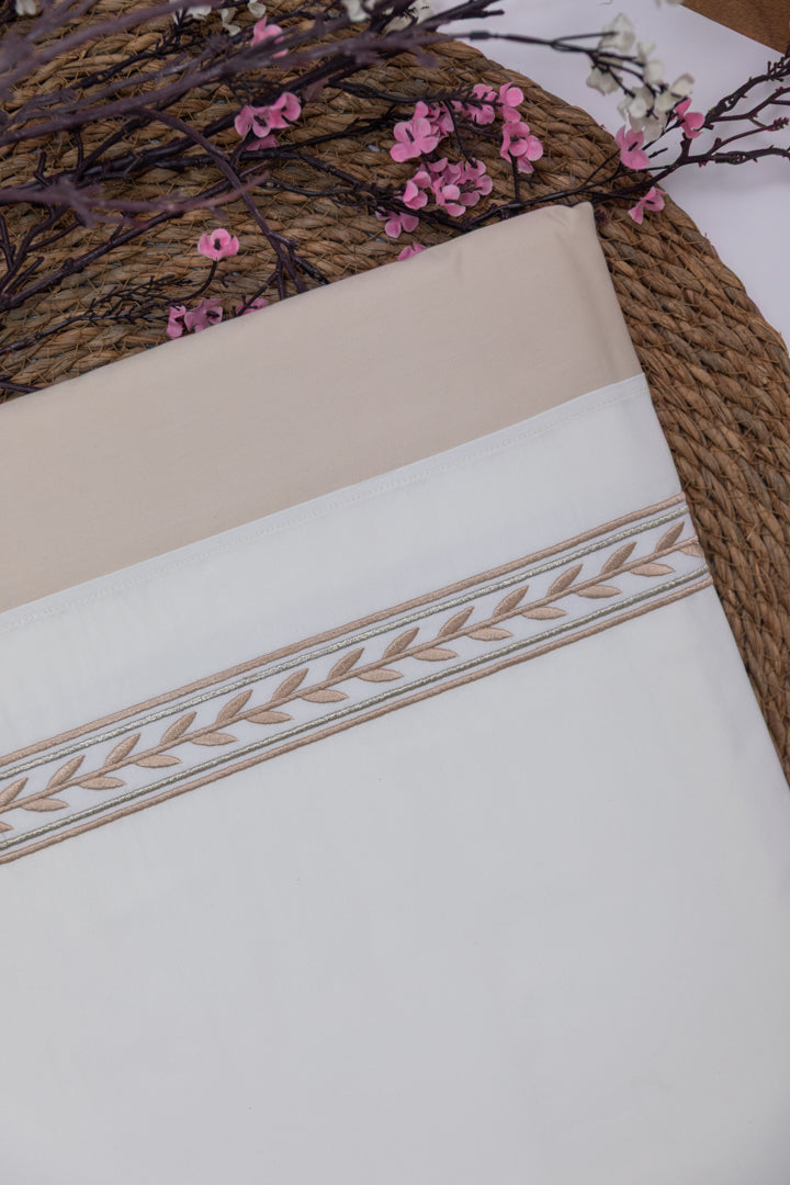 ملاية فاخرة مصنوعة من قطن بيركال عالي الجودة، تتميز بملمس فائق النعومة وراحة استثنائية طوال الليل بفضل قماشه الخفيف والقابل للتنفس. صُممت بخامة متينة مقاومة للتنسيل، مما يحافظ على نعومتها ومظهرها الأنيق حتى بعد الغسيل المتكرر. مزينة بتطريز بخيوط حريرية رقيقة يضفي لمسة راقية وفاخرة على غرفة نومك. وبفضل ثبات ألوانها وسهولة العناية بها، تظل زاهية ومنتعشة، مما يجعلها الخيار المثالي لمن يبحثون عن الأناقة والمتانة معًا.
