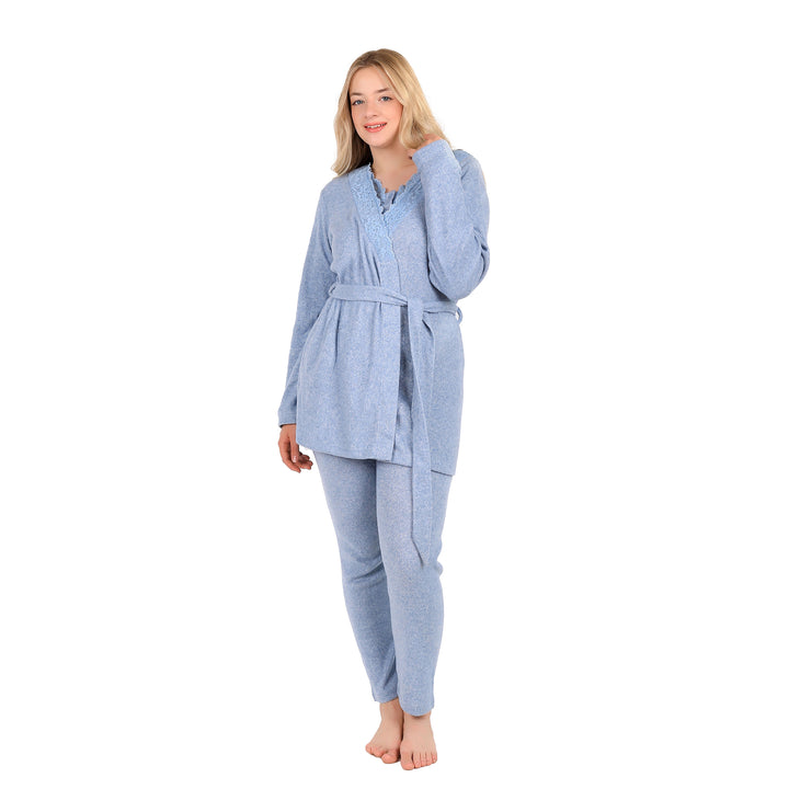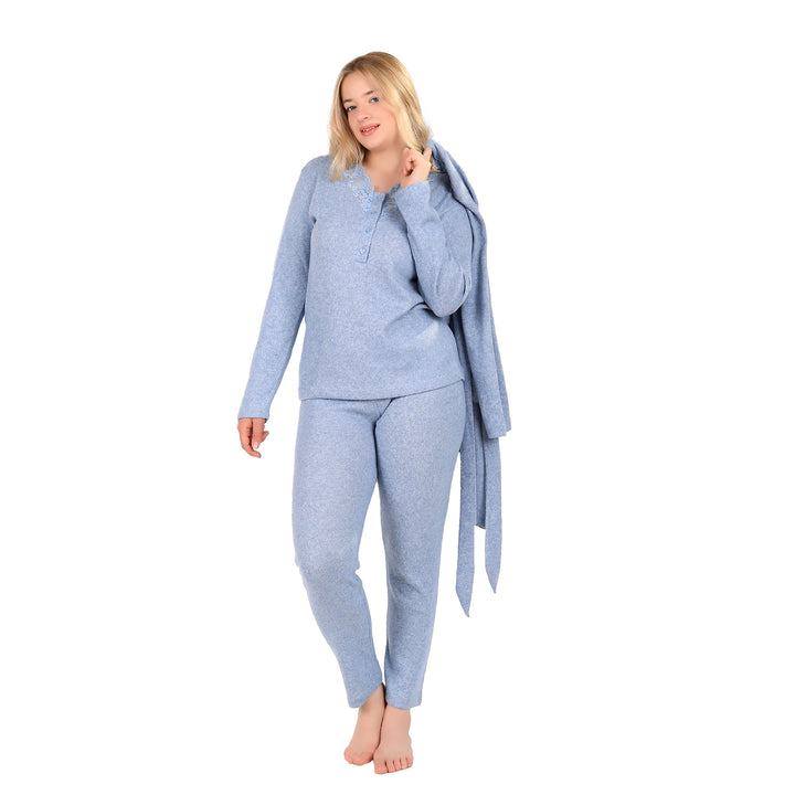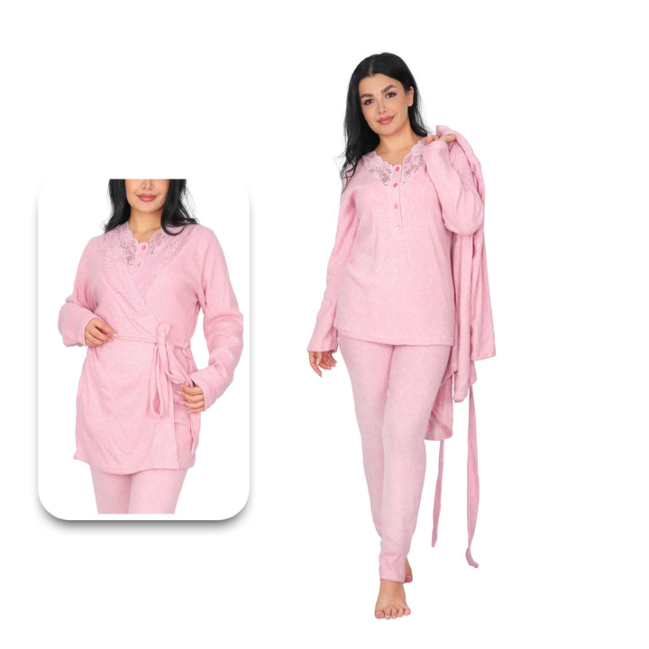 3-Piece Set: This complete set includes a stylish jacket, comfortable pants, and a practical robe with pockets.