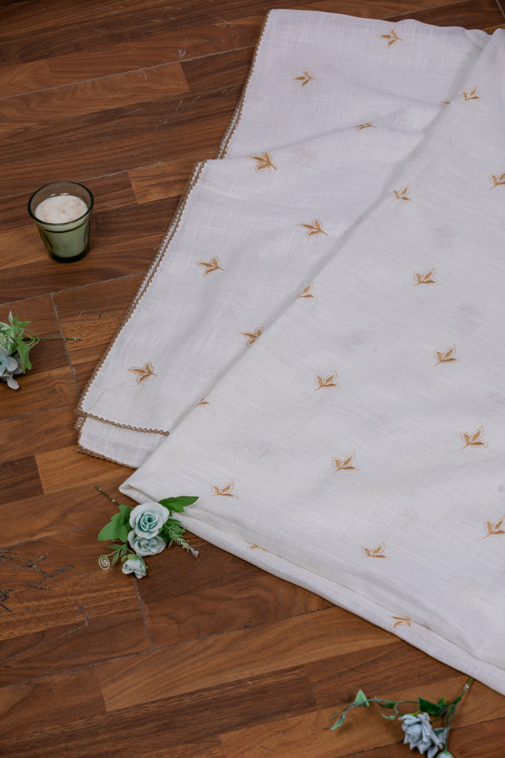 أضيفي لمسة من الأناقة والرقي إلى مائدتك مع مفرش سفره كتان مطرز عالي الجودة والمزيّن بتطريز فاخر من دانتيل الغوبلان. يتميز بتصميم أنيق يمنح طاولة الطعام مظهرًا ملكيًا راقيًا، مما يجعله مثاليًا للعزومات العائلية والمناسبات الاحتفالية أو للاستخدام اليومي الأنيق.