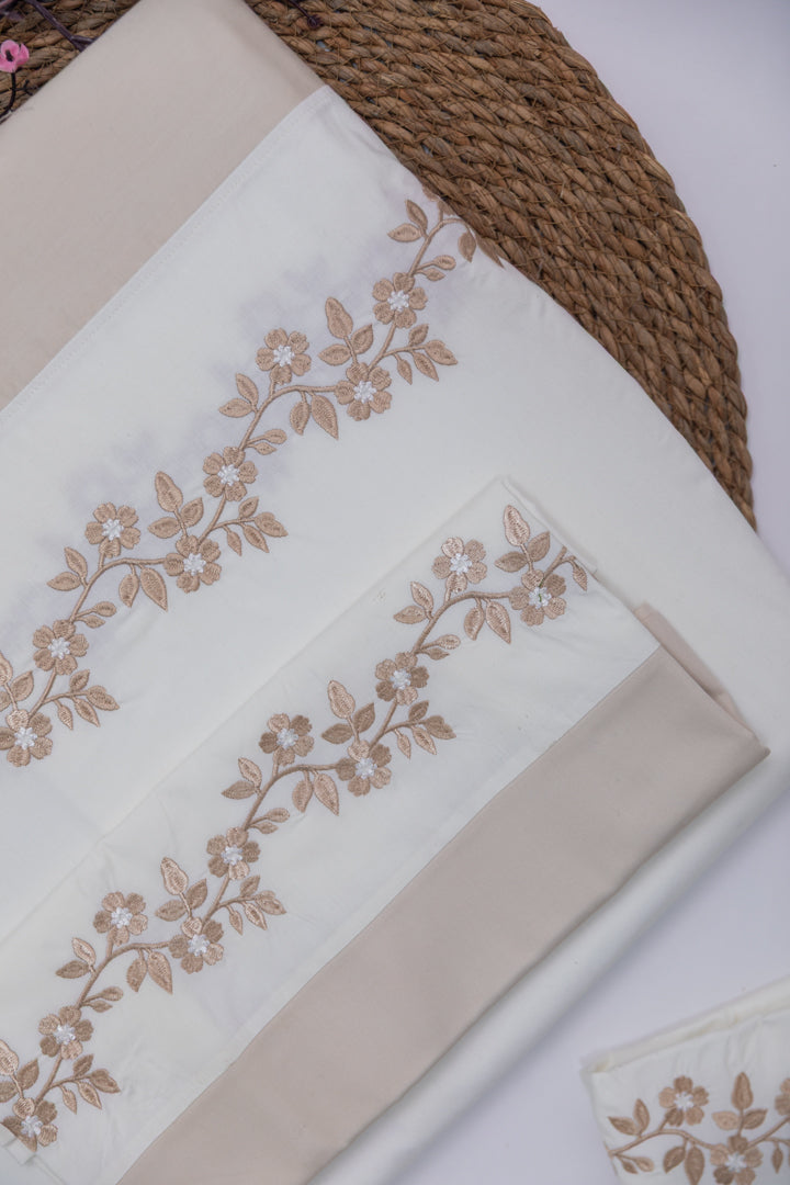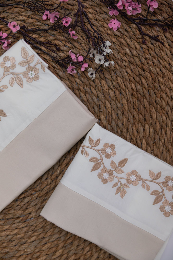 أضيفي لمسة من الأناقة الكلاسيكية إلى غرفة نومك مع ملاية مطرزة Flourish Embroidered، بتصميم فاخر مصنوع من قطن البركال عالي الجودة ليوفر نعومة لا مثيل لها وراحة استثنائية. يتميز القماش بخفته وتهويته الممتازة ليمنحك نومًا هادئًا ومريحًا، كما أن خامته المتينة المقاومة للتقشير تحافظ على نعومتها وأناقتها حتى بعد الغسيل المتكرر. وتضفي التطريزات الرفيعة بخيوط الحرير لمسة فنية راقية ترتقي بأناقة سريرك لتجعله أكثر فخامة وجمالًا.