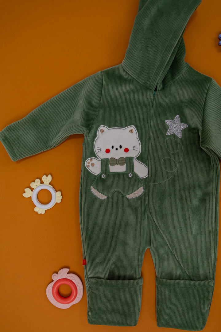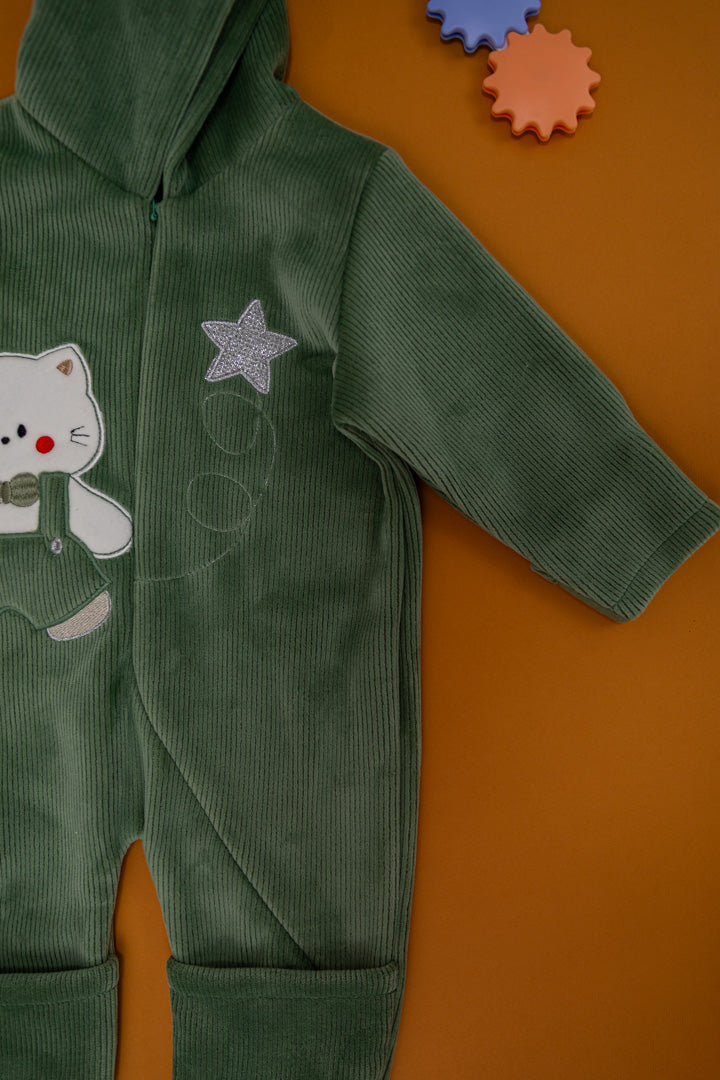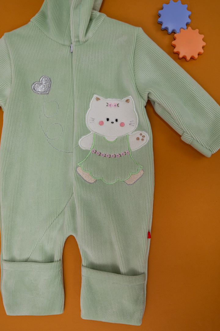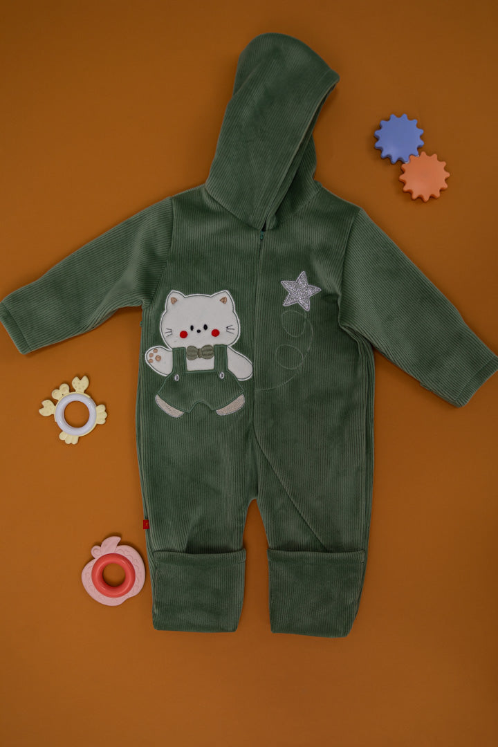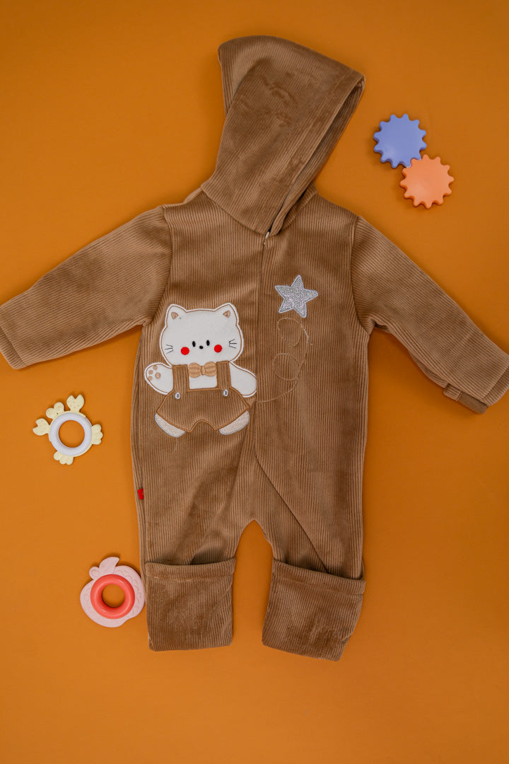 Soft and cozy velvet romper designed to keep your baby warm and comfortable during cold days.