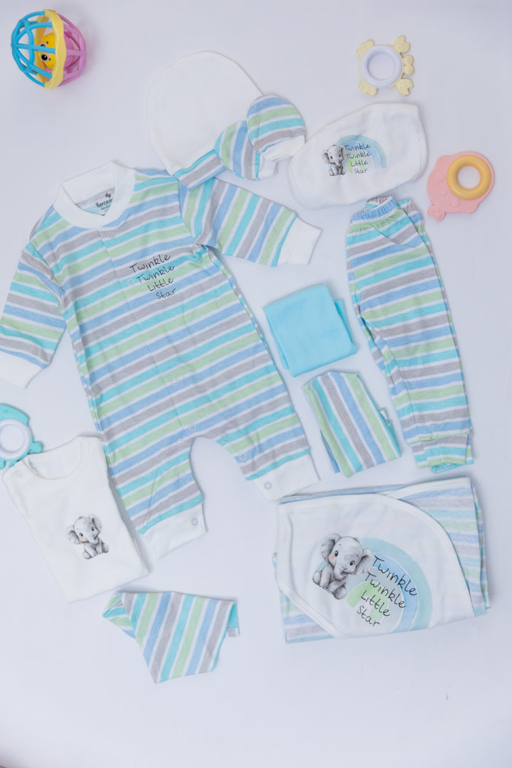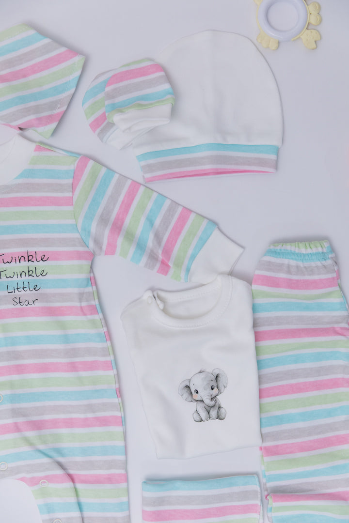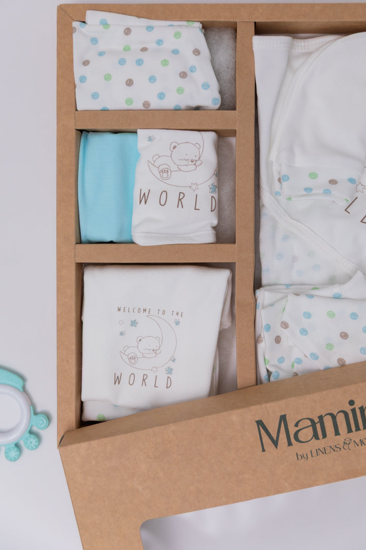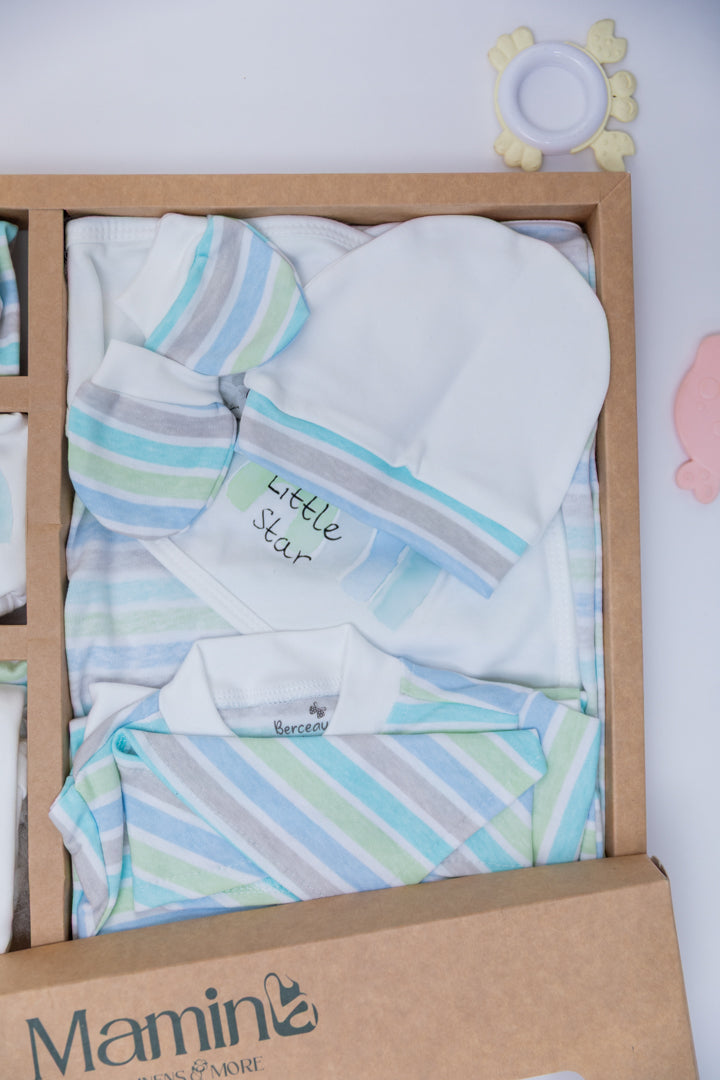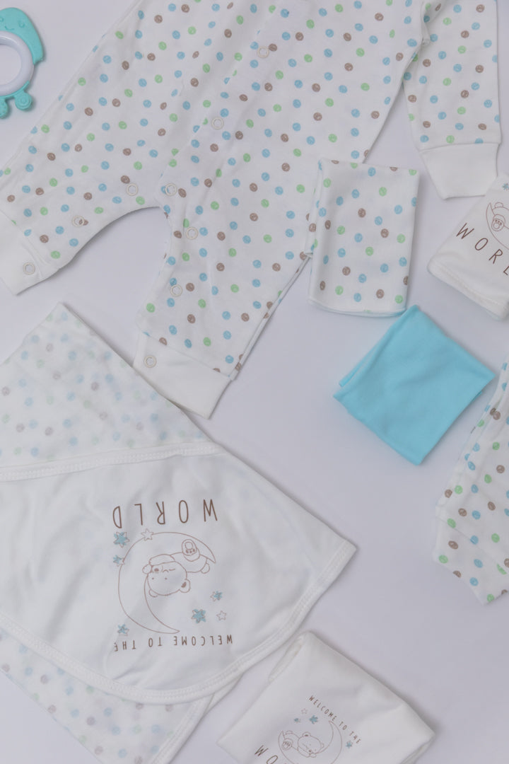طقم مستشفى ناعم ومريح مصنوع من قطن نقي 100٪، مصمم ليمنح البيبي الدفء والراحة من أول يوم. مثالي للاستخدام في المستشفى أو كهدية مميزة للمولود الجديد.