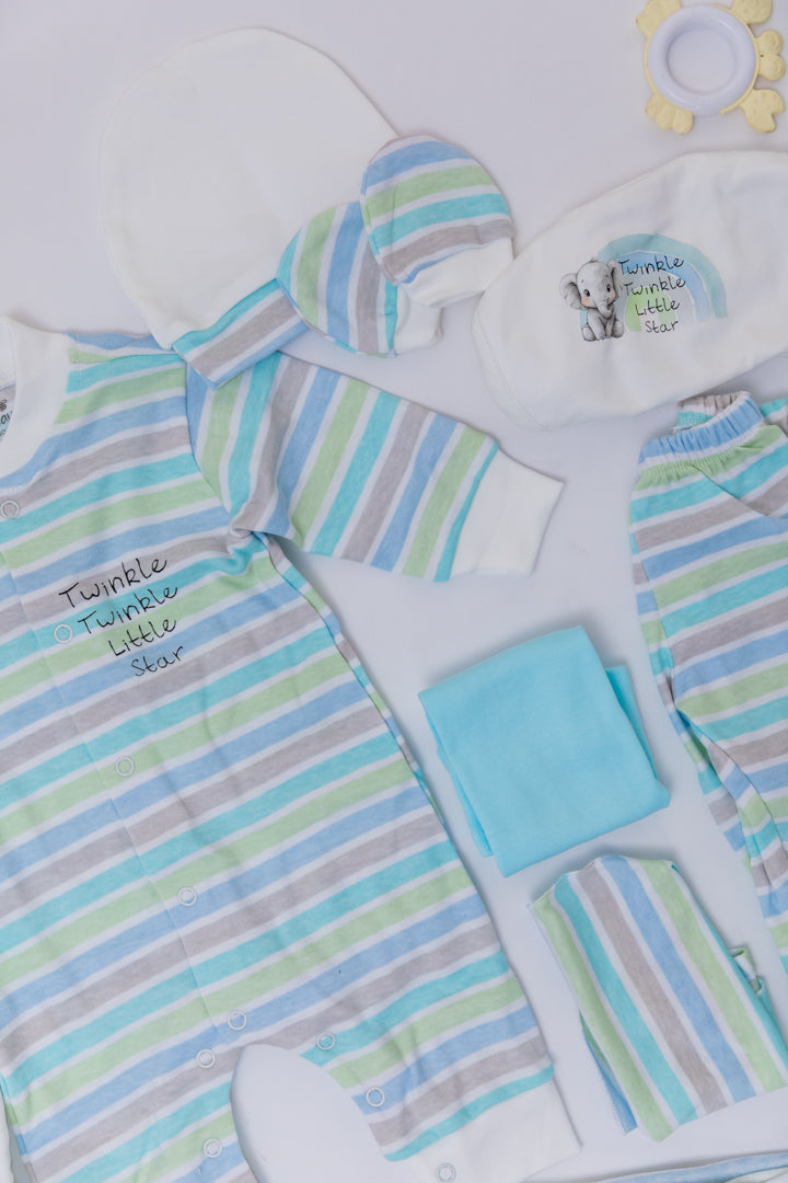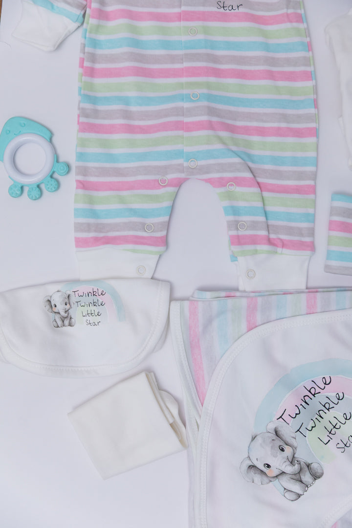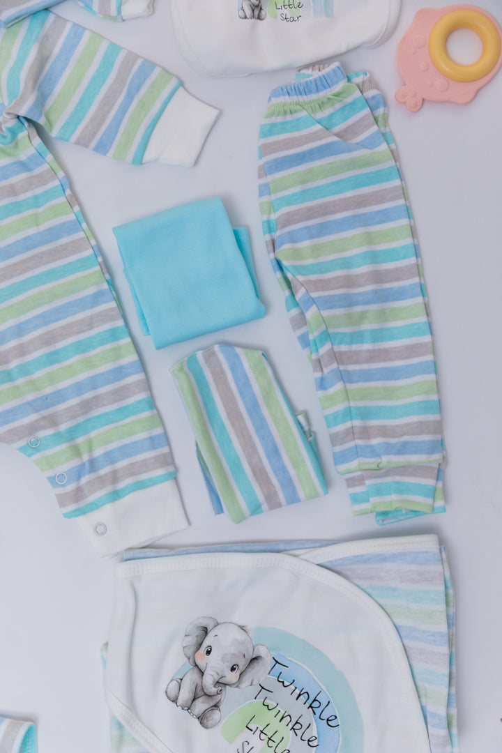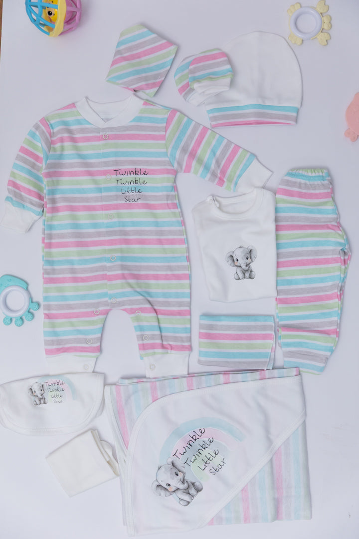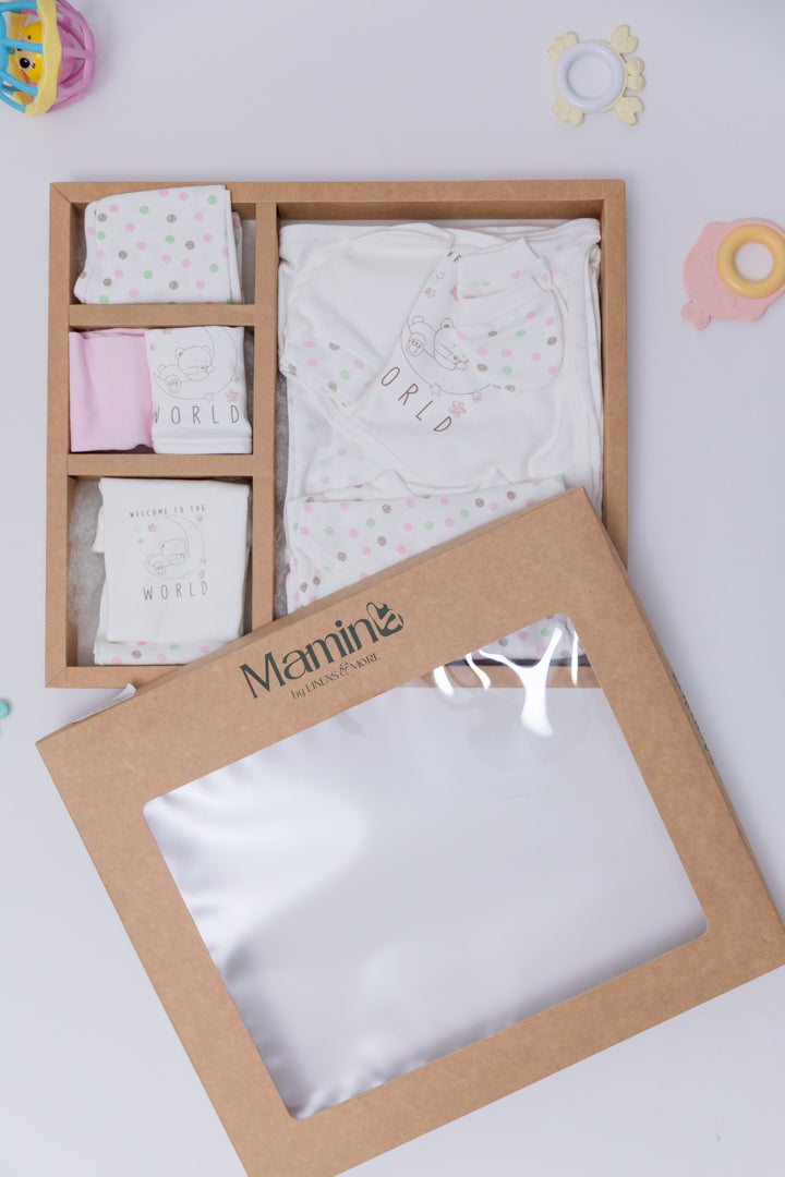 طقم مستشفى ناعم ومريح مصنوع من قطن نقي 100٪، مصمم ليمنح البيبي الدفء والراحة من أول يوم. مثالي للاستخدام في المستشفى أو كهدية مميزة للمولود الجديد.