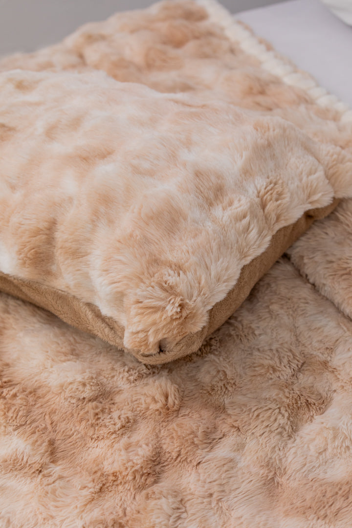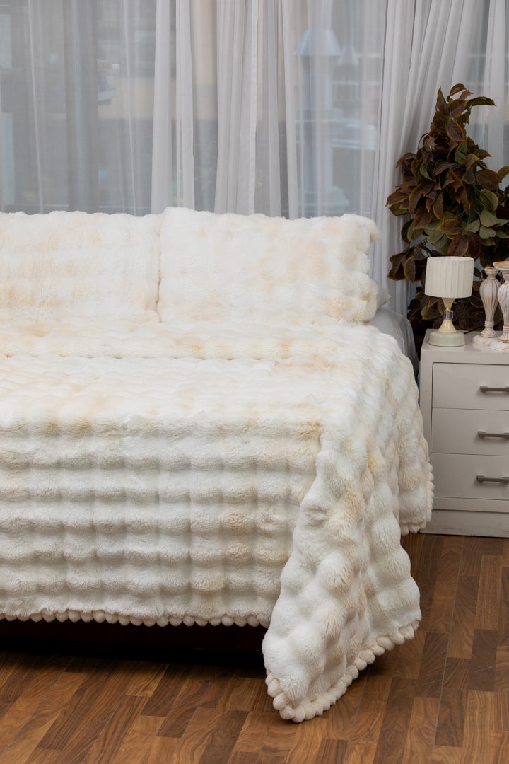 اختبر أقصى درجات الأناقة والدفء مع لحاف فرو مضلع المصمم ليمنح غرفة نومك مزيجًا من الراحة والفخامة. مصنوع من خامات عالية الجودة، يجمع بين ملمس الفرو الناعم ونعومة لحاف القطن ليكون قطعة أساسية راقية لنوم هادئ ومريح. يتميز بنقشة مخططة أنيقة تضيف عمقًا وجمالًا لديكور غرفتك، مع بطانة داخلية ناعمة توفر إحساسًا استثنائيًا بالراحة. مثالي للأمسيات الباردة أو كطبقة ديكورية أنيقة، حيث يجمع هذا اللحاف الفرو بين الفخامة والدفء بانسجام مثالي.