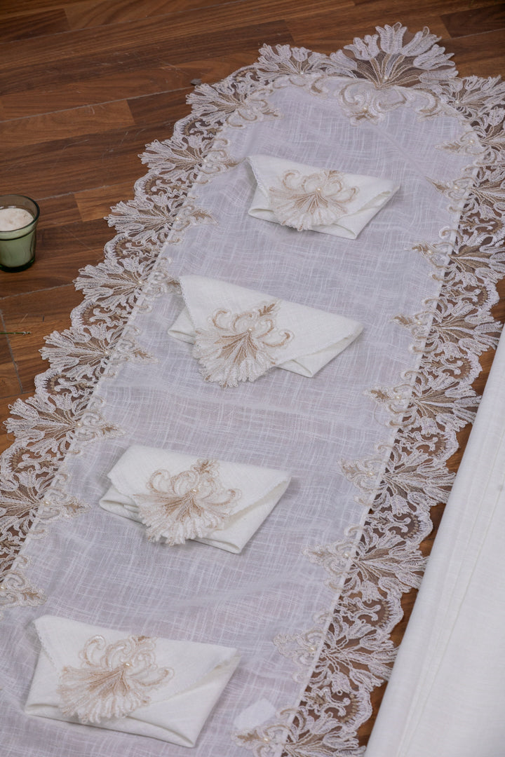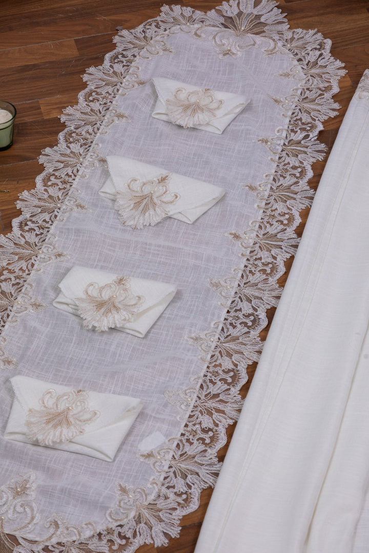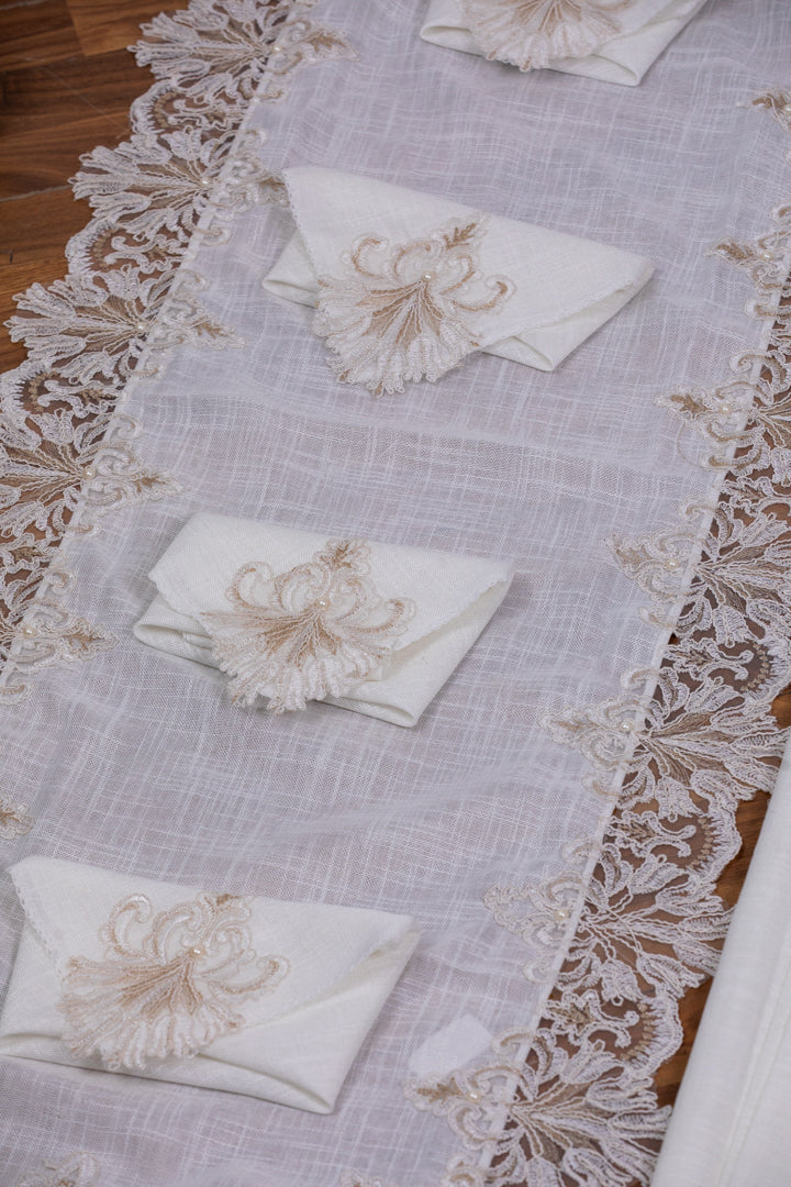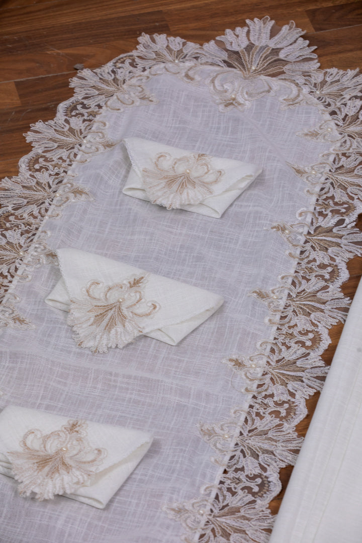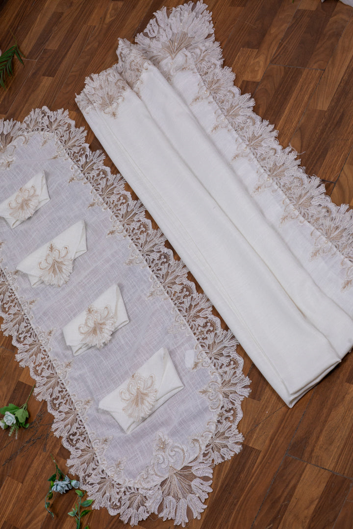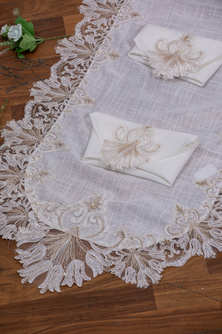 أضيفي لمسة من الفخامة والرقي إلى مائدتك مع مفرش سفره كتان Rose Golden، المصنوع من قماش كتان فاخر ومزين بـ دانتيل جوبلان أنيق. يجمع بين الجمال والعملية ليمنحك إطلالة راقية في كل مناسبة.