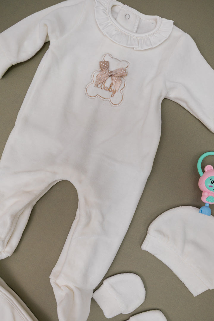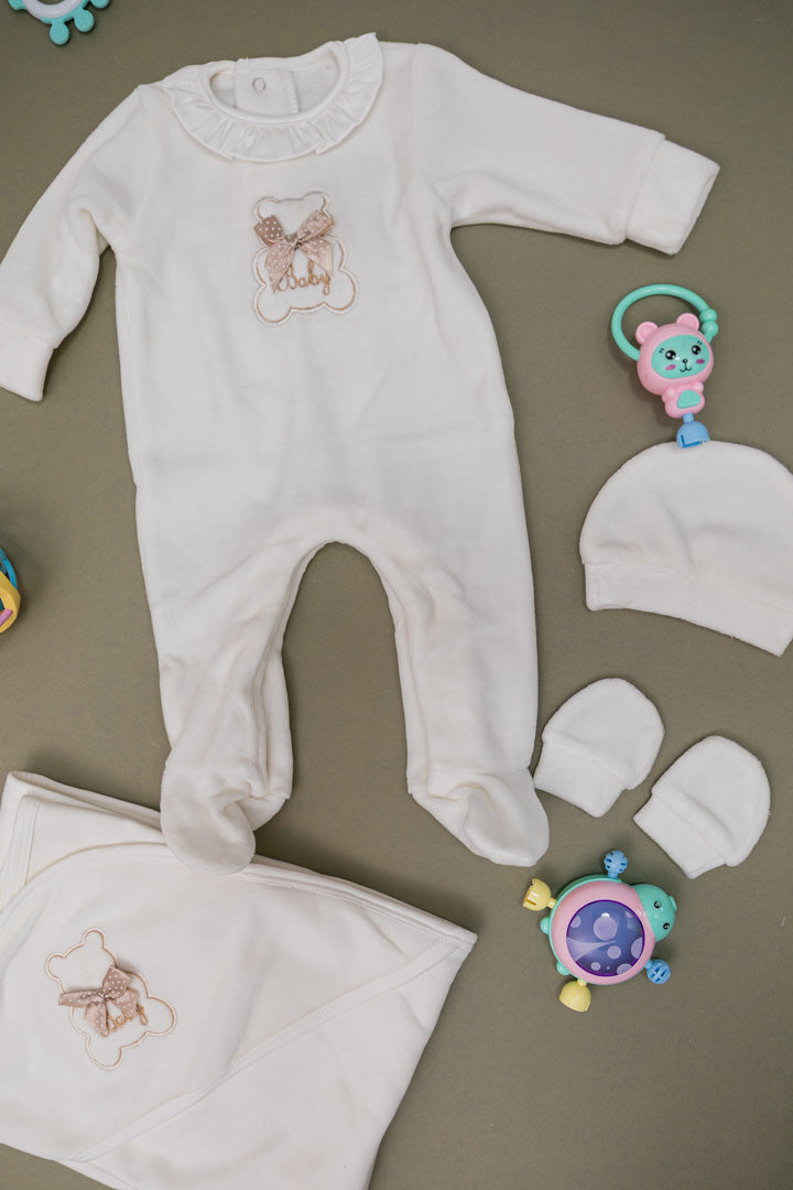 Keep your little one cozy and stylish with this 4-piece velvet baby set, made from ultra-soft, warm fabric perfect for cold days. Designed for comfort and cuteness, it’s an ideal choice for outings or as a thoughtful gift for newborns.