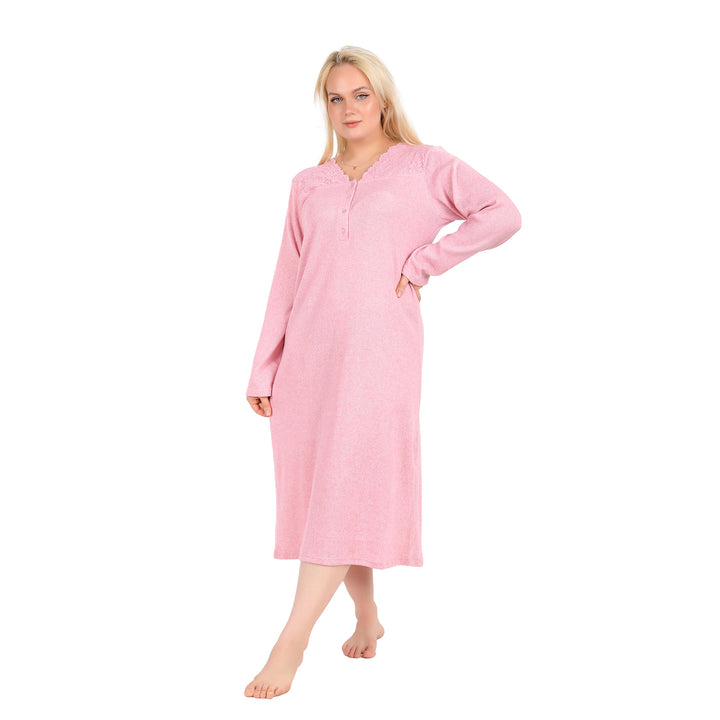 * Chic Detailing: The nightgown is adorned with delicate soft lace trim on the neckline and front placket.