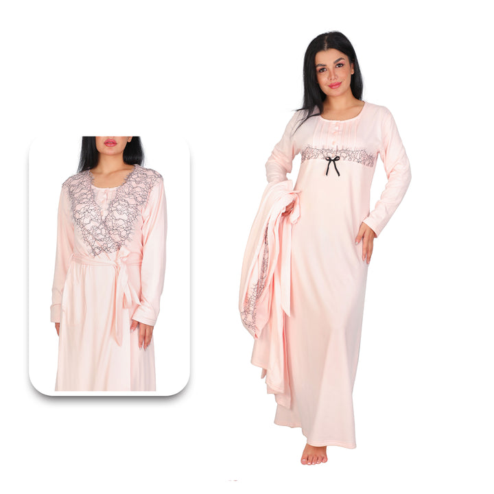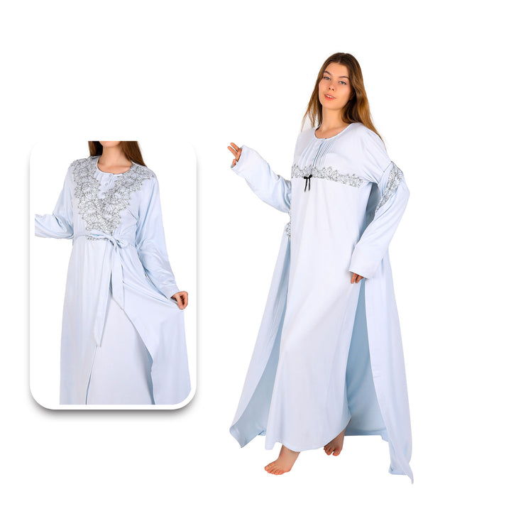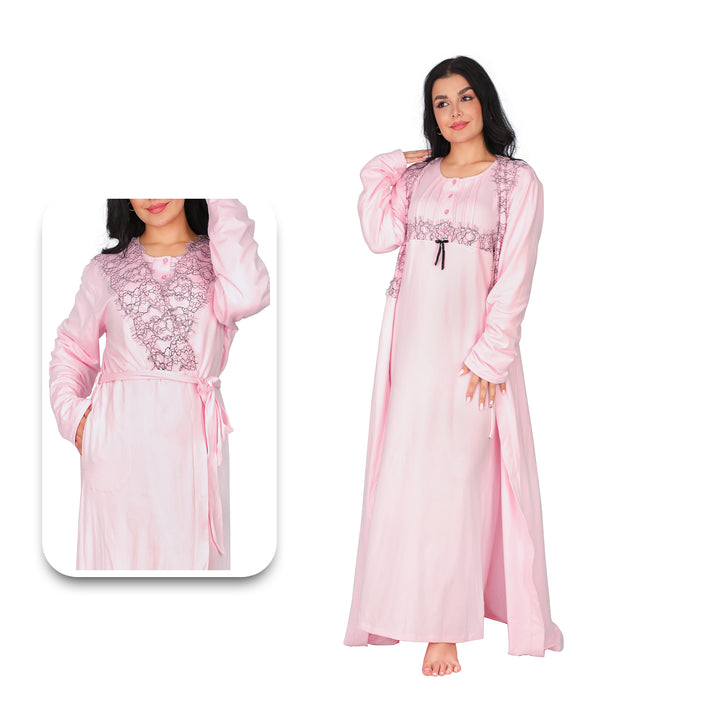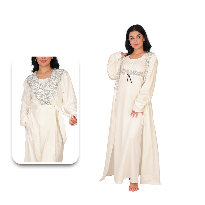 Complete 2-Piece Set: This elegant and cozy set includes a long nightgown with long sleeves and a coordinating, long-sleeved robe, offering a complete and stylish loungewear look.