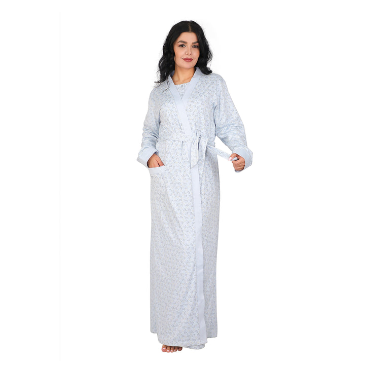 Complete 2-Piece Set: This cozy and elegant set includes a long nightgown with long sleeves and a coordinating, long-sleeved robe, offering a complete and stylish loungewear look.
