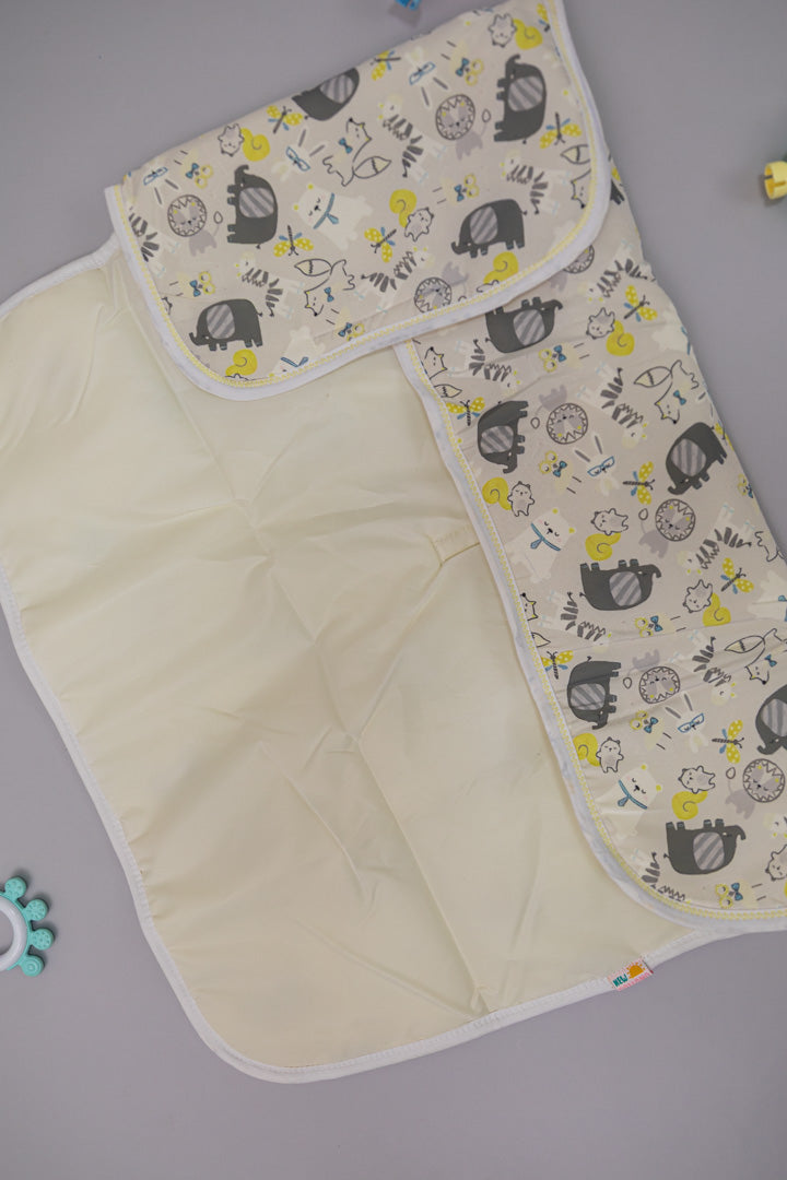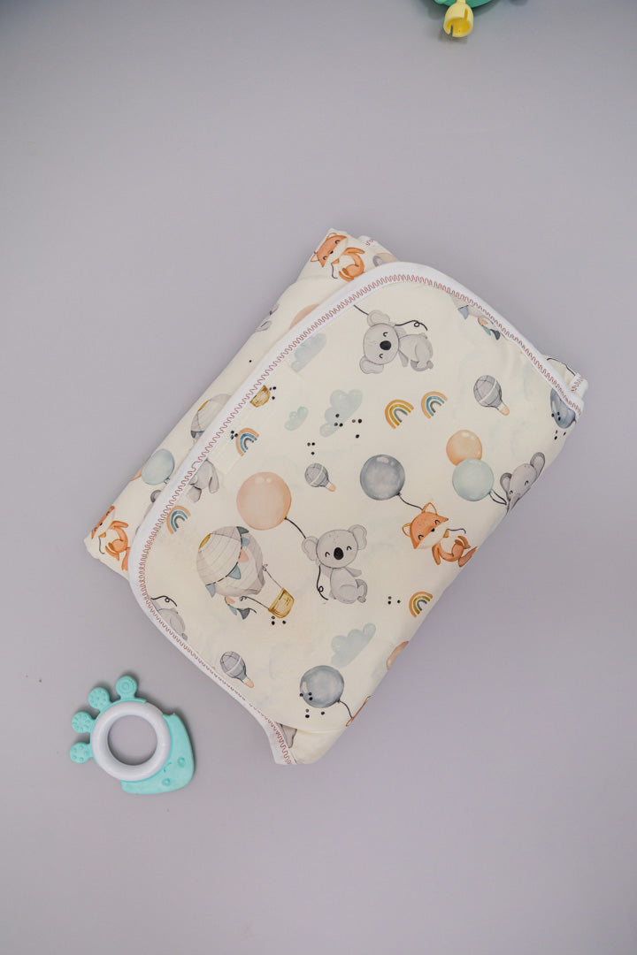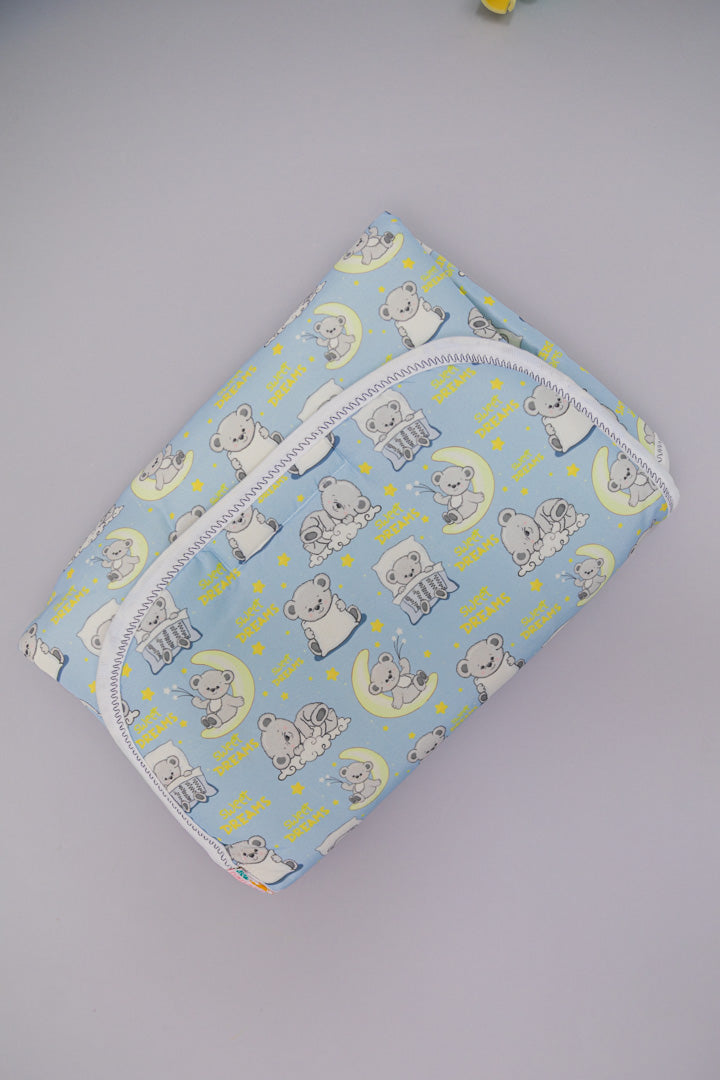 Practical baby changing mat with Velcro closure for easy folding and storage. Made of waterproof, easy-to-clean material, providing comfort and hygiene during diaper changes at home or on the go.