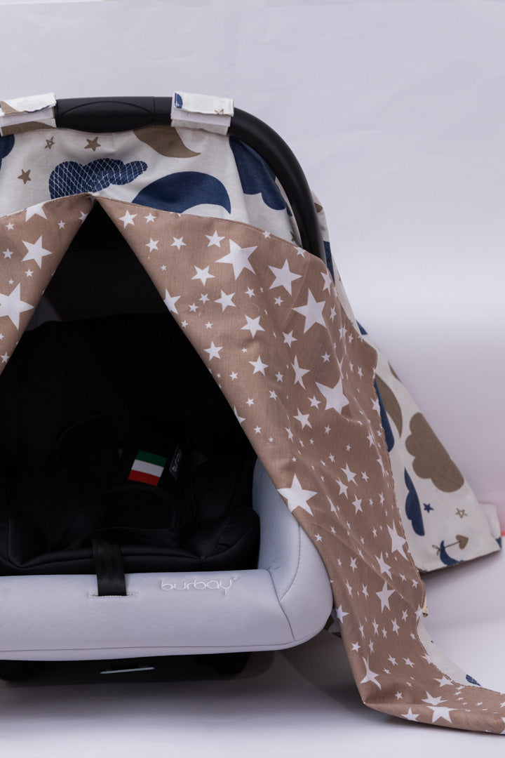 A practical and stylish car seat cover made from high-quality materials to protect the car seat from dust and stains, helping to maintain its cleanliness and appearance for a longer time. It features a soft fabric and is easy to install and remove for effortless cleaning. Its design is compatible with most car seat types.