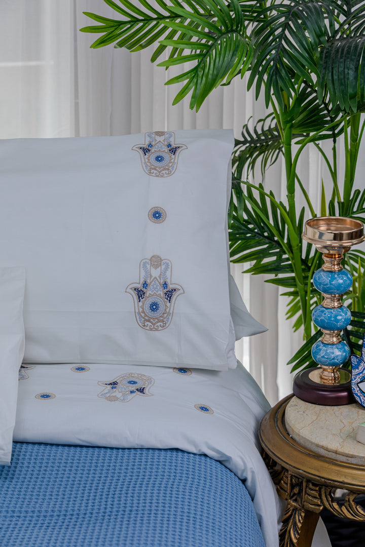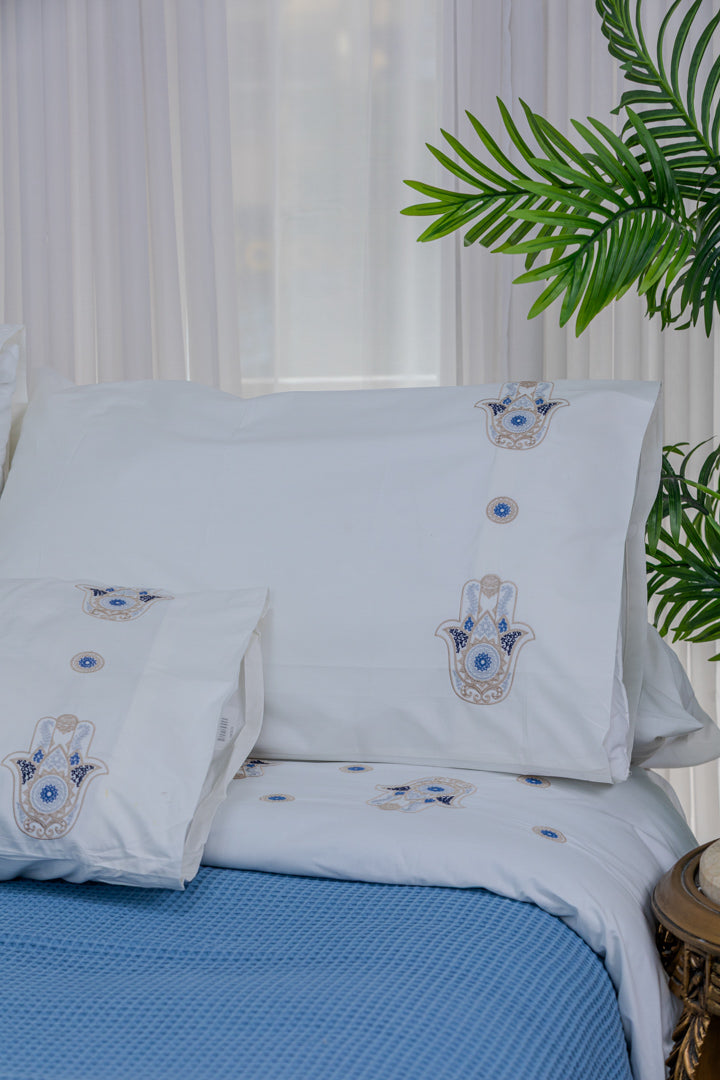 Crafted from premium Percale cotton and delicately embroidered with silky threads, each piece brings timeless elegance and a soft luxurious feel to your bedroom.