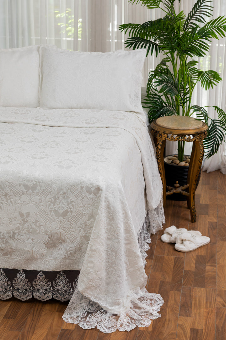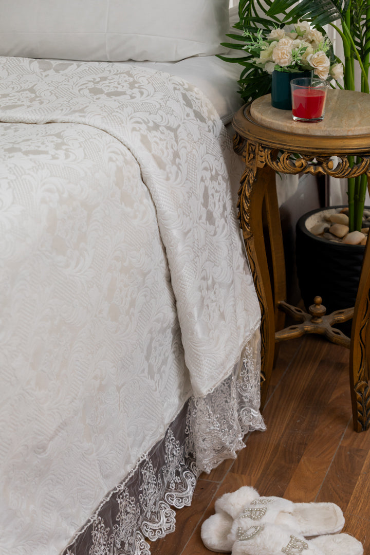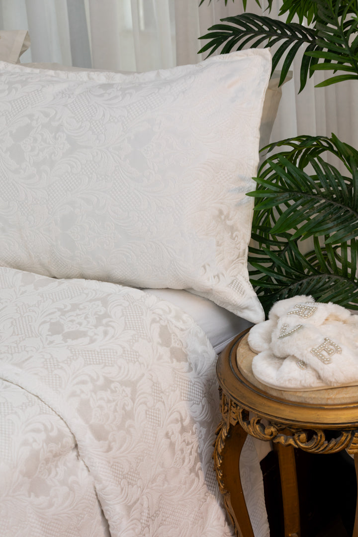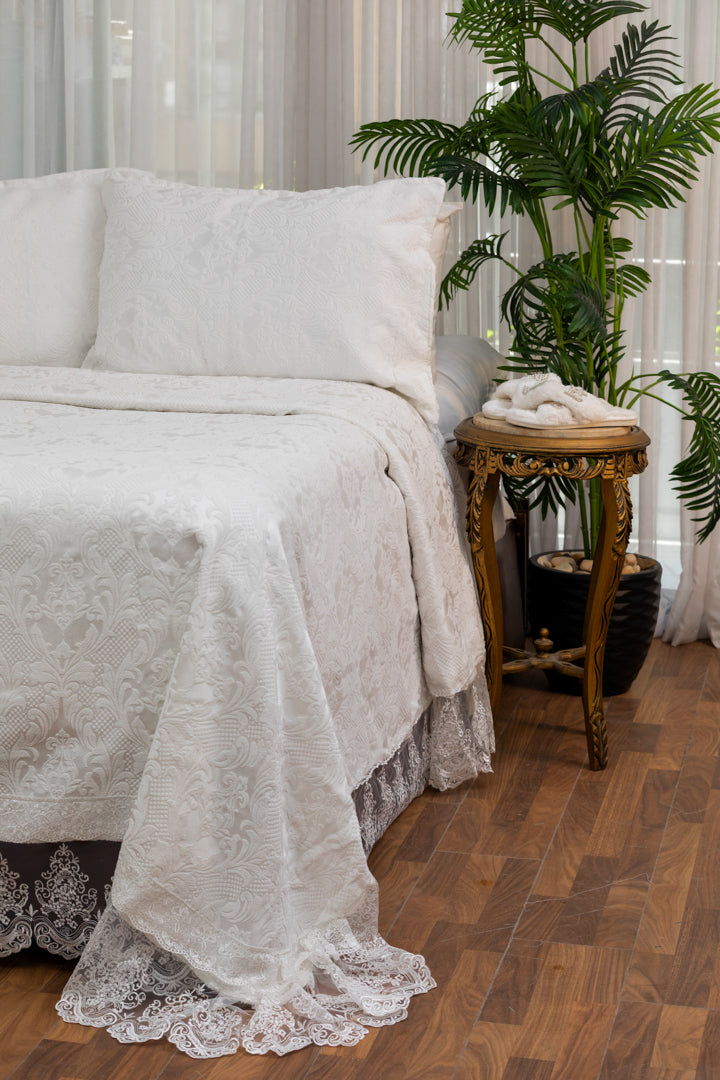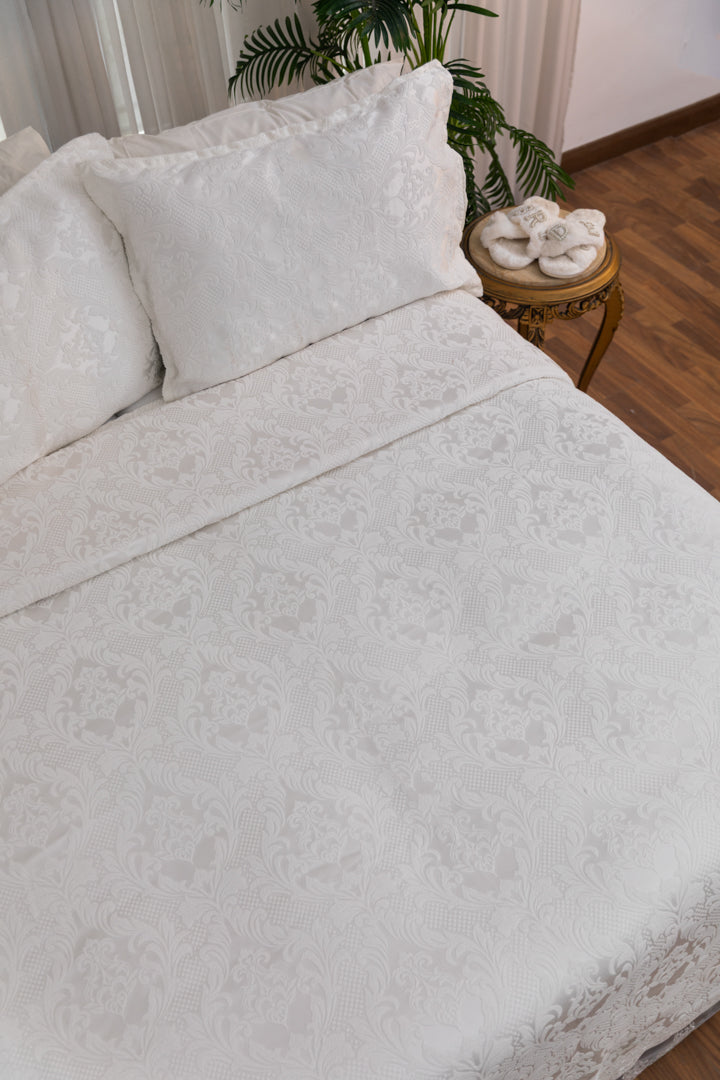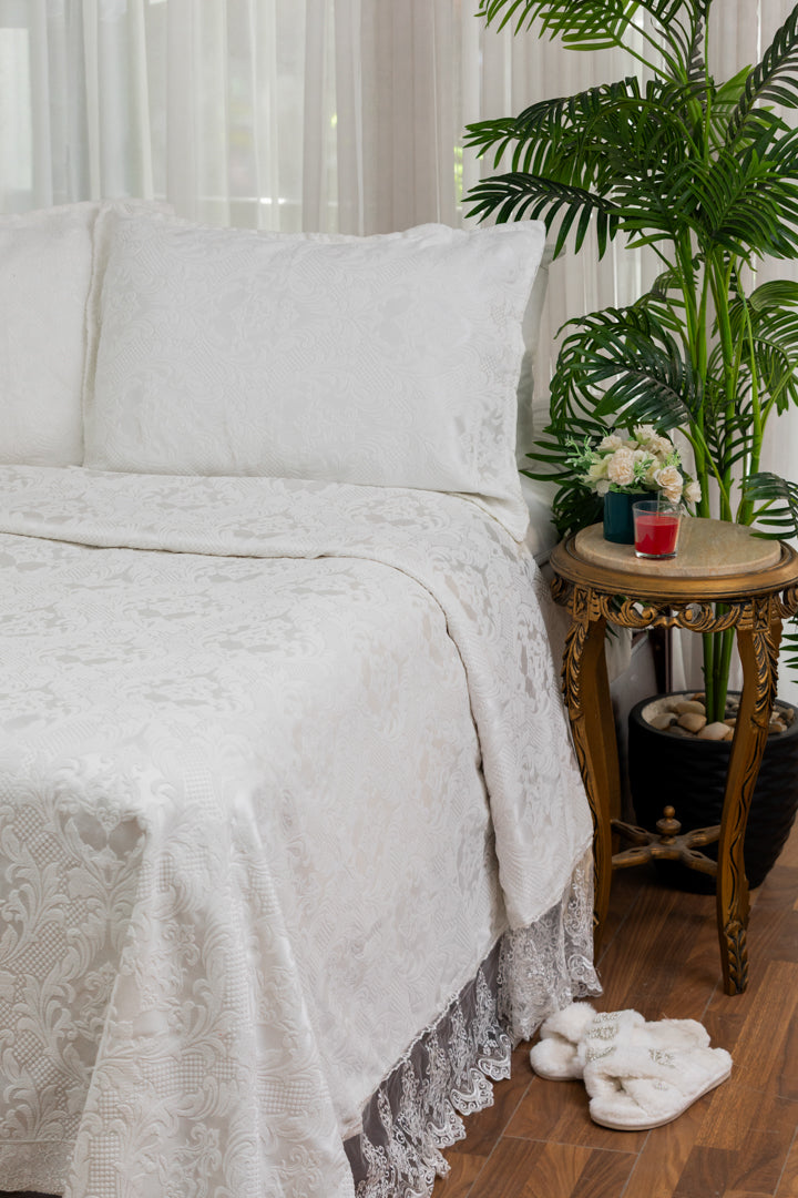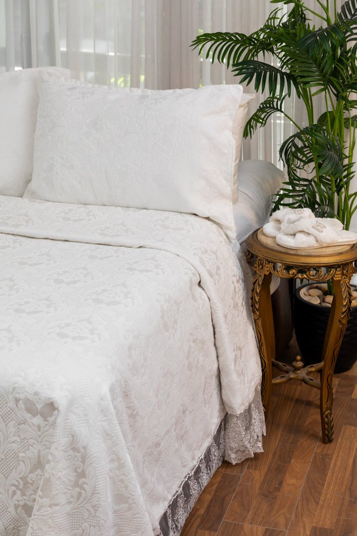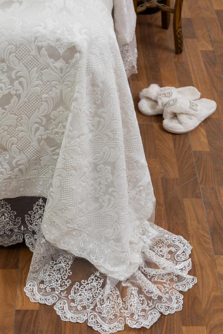 Wedding bedspread with elegant engraved patterns, adding a luxurious touch to your bedroom.