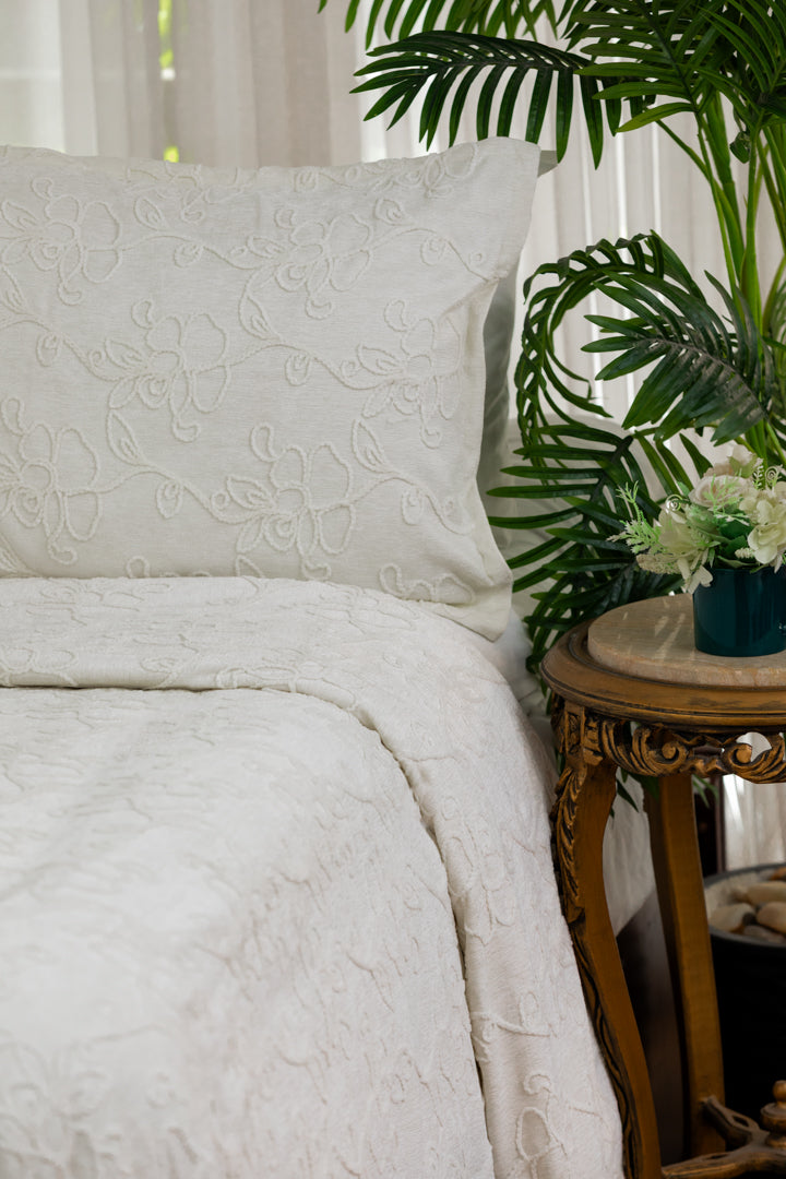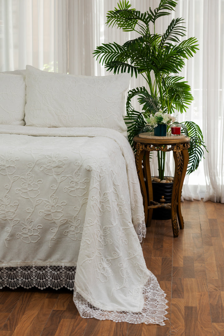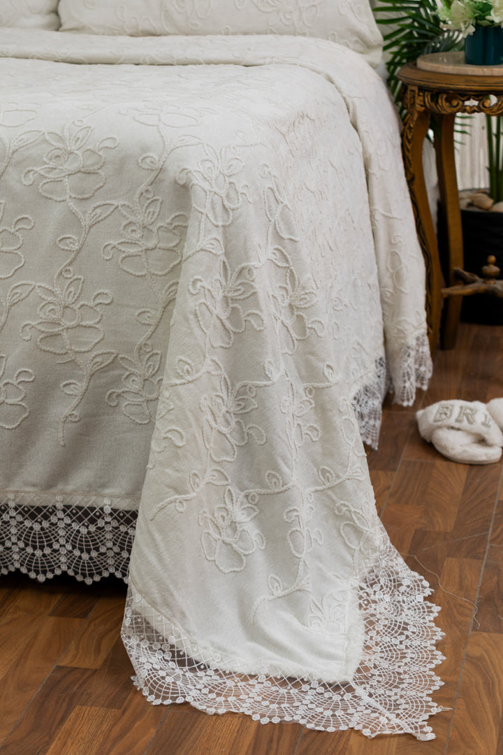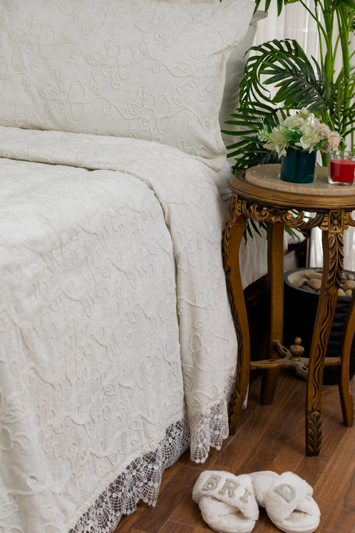 Wedding bedspread with elegant engraved patterns, adding a luxurious touch to your bedroom.