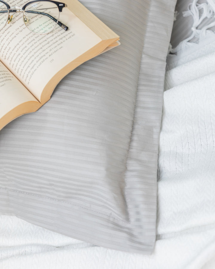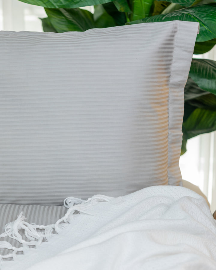 Made from premium pure cotton with an elegant stripe design featuring soft satin threads and a refined sheen.