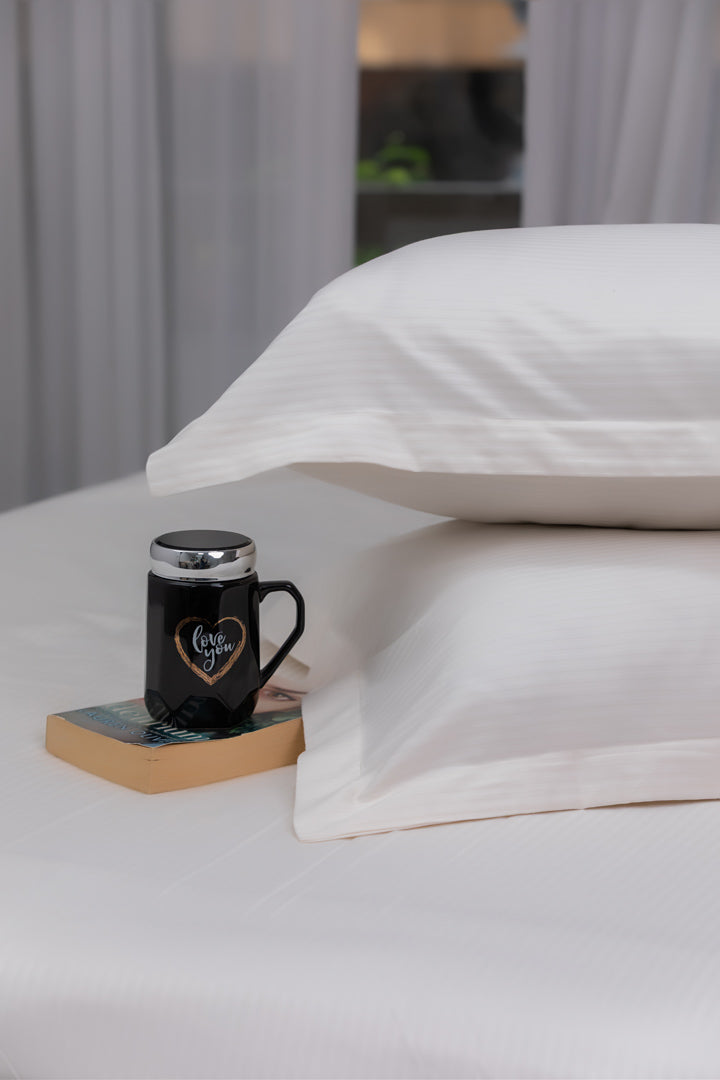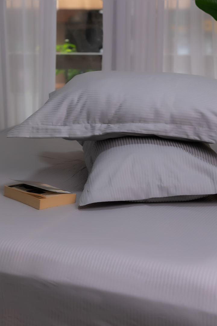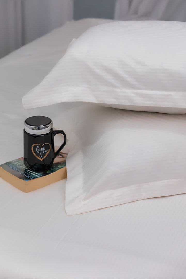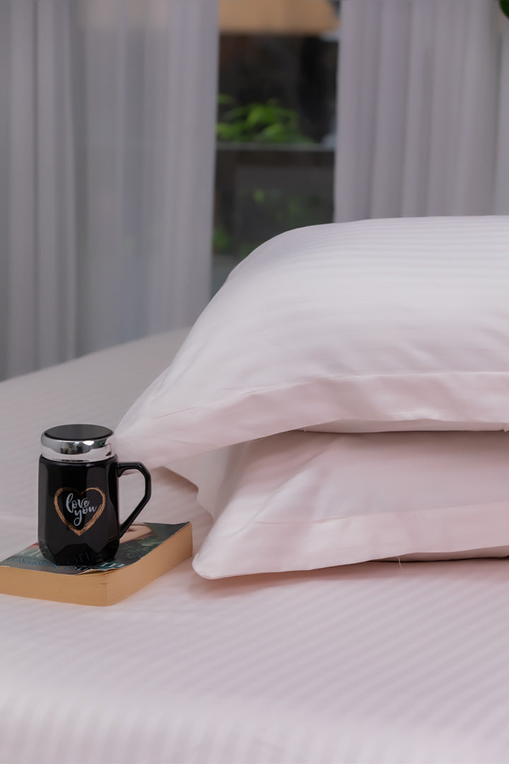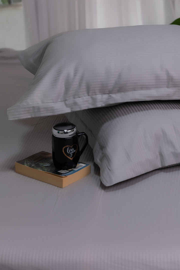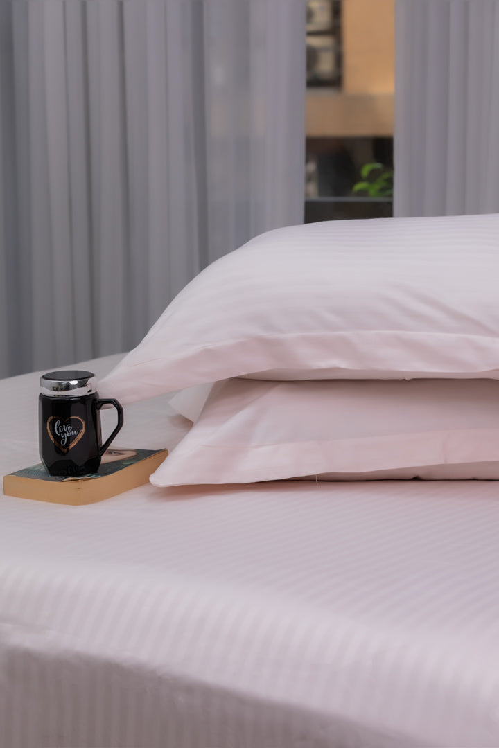 Made from premium pure cotton with an elegant stripe design featuring soft satin threads and a refined sheen.