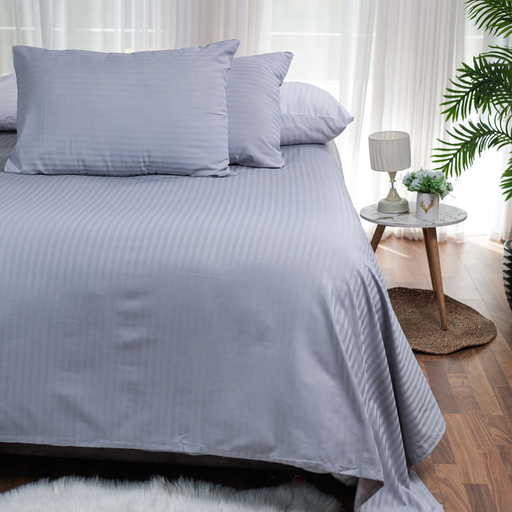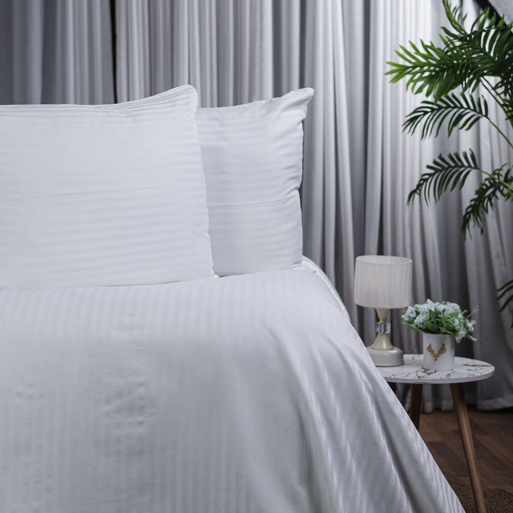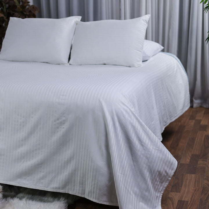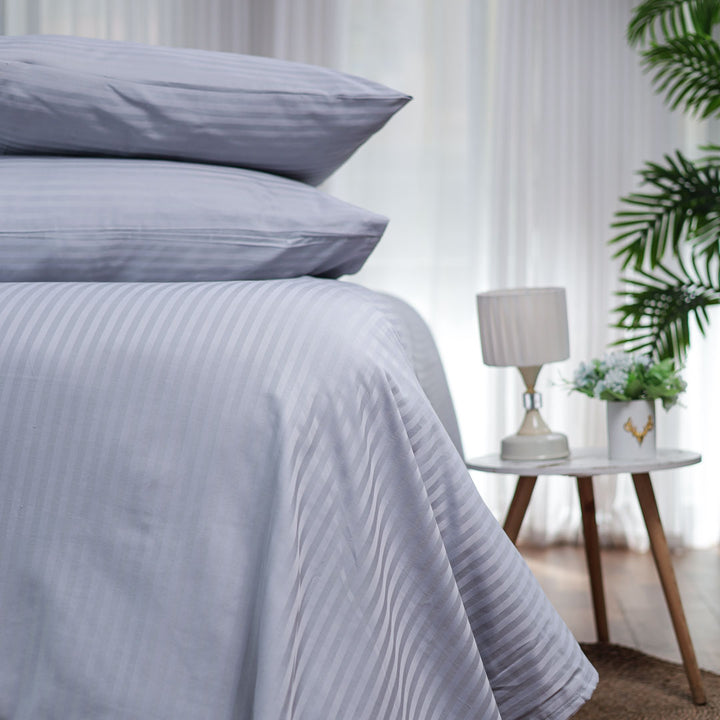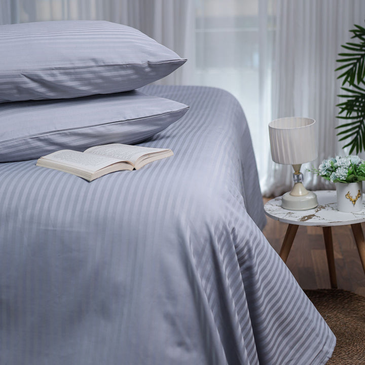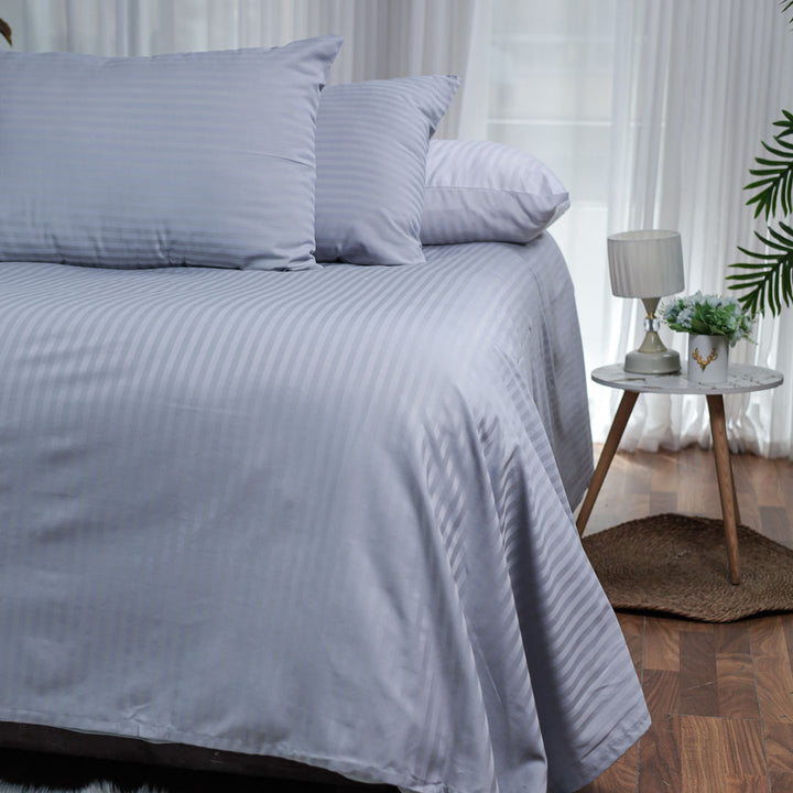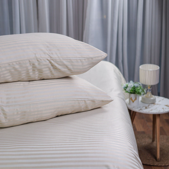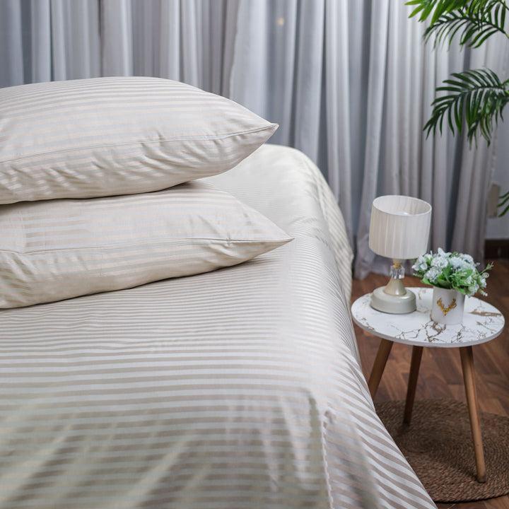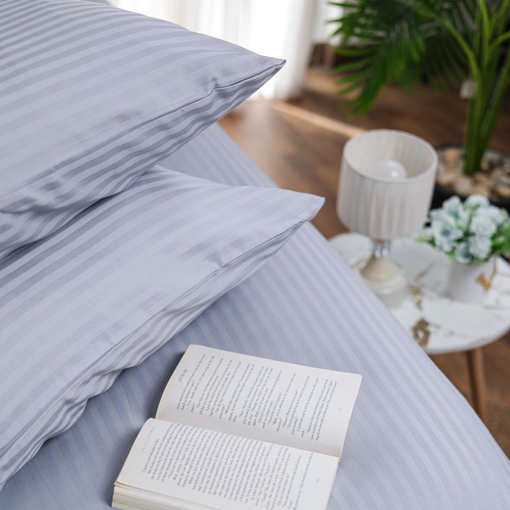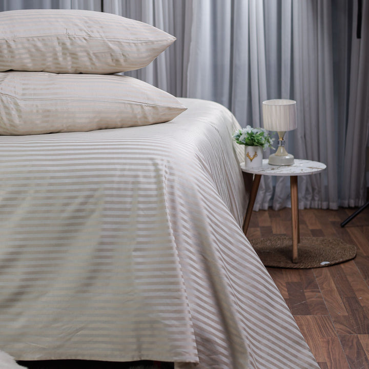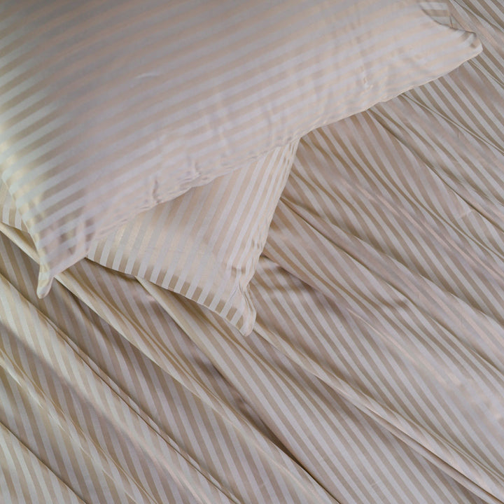 Fitted sheet with soft fabric and elegant stripe pattern, adding a modern look and a luxurious touch to your bed.