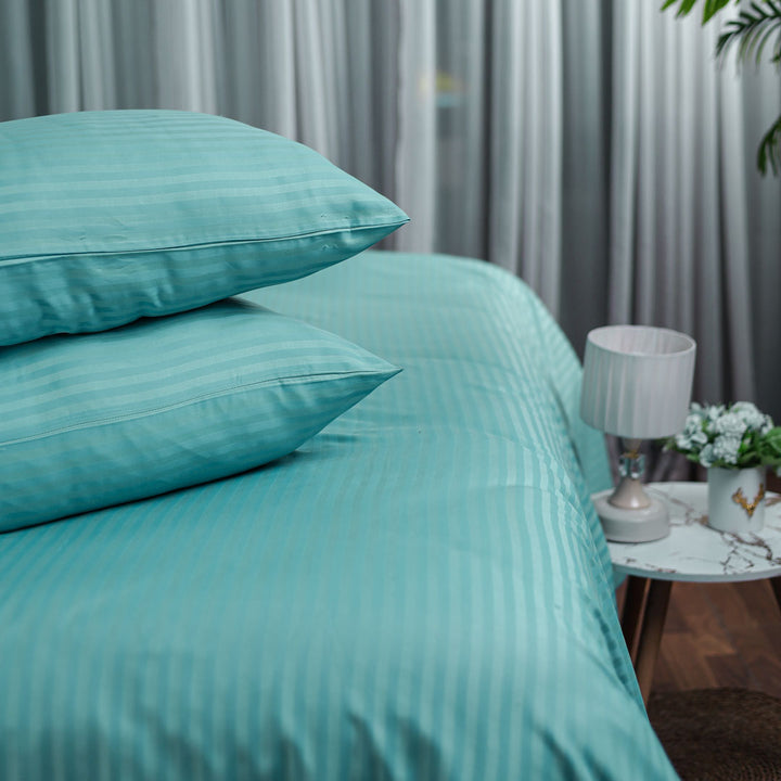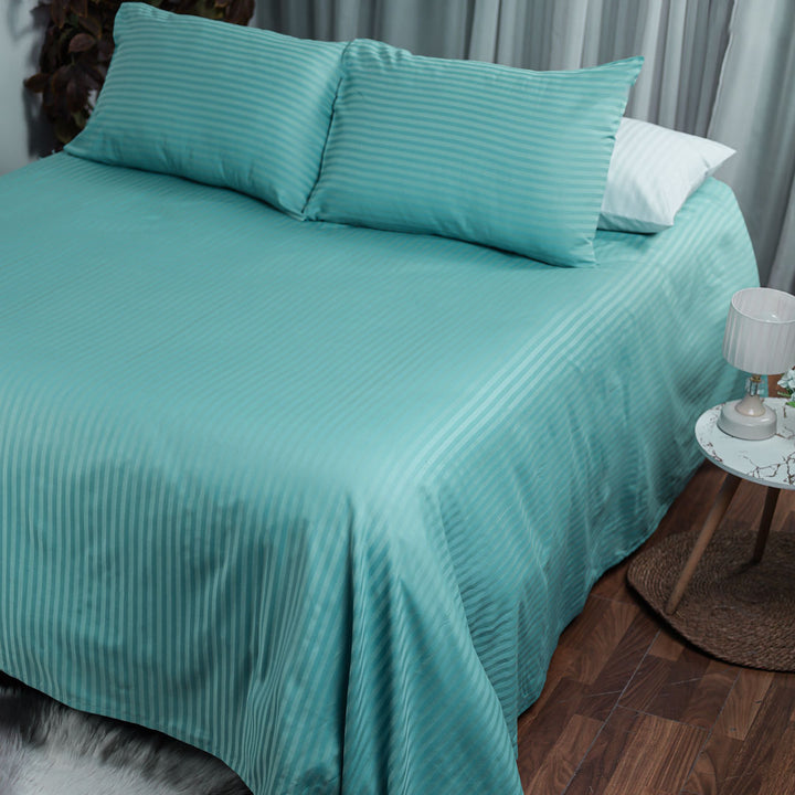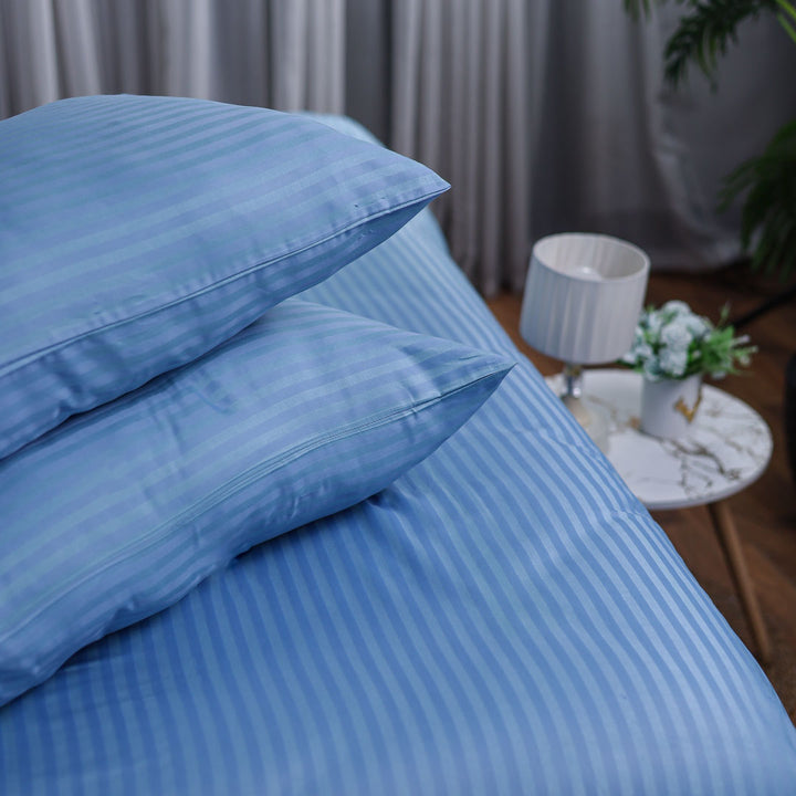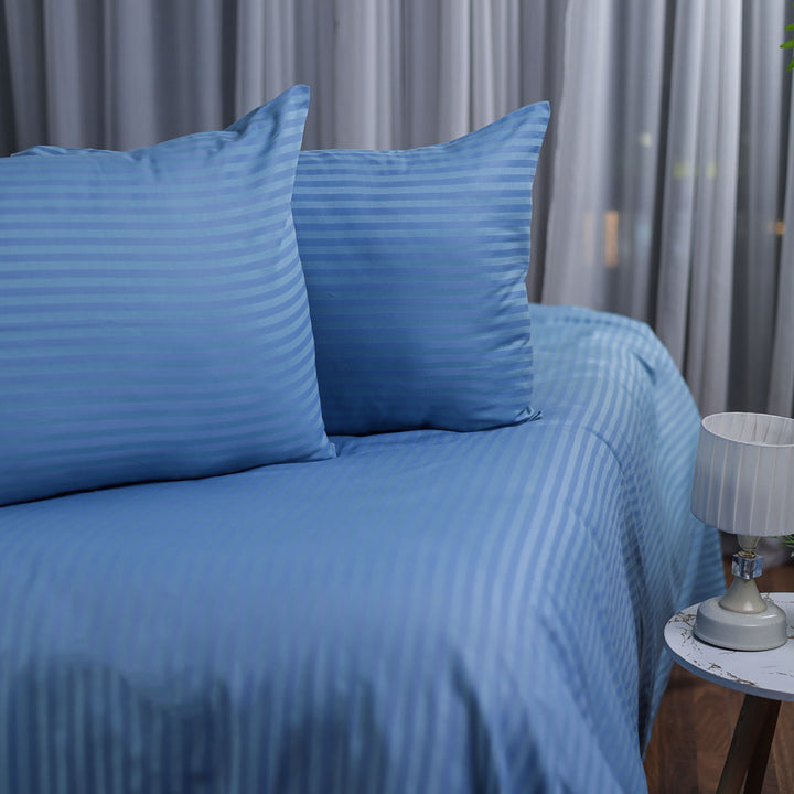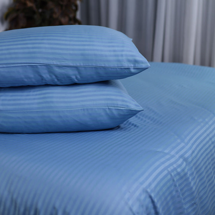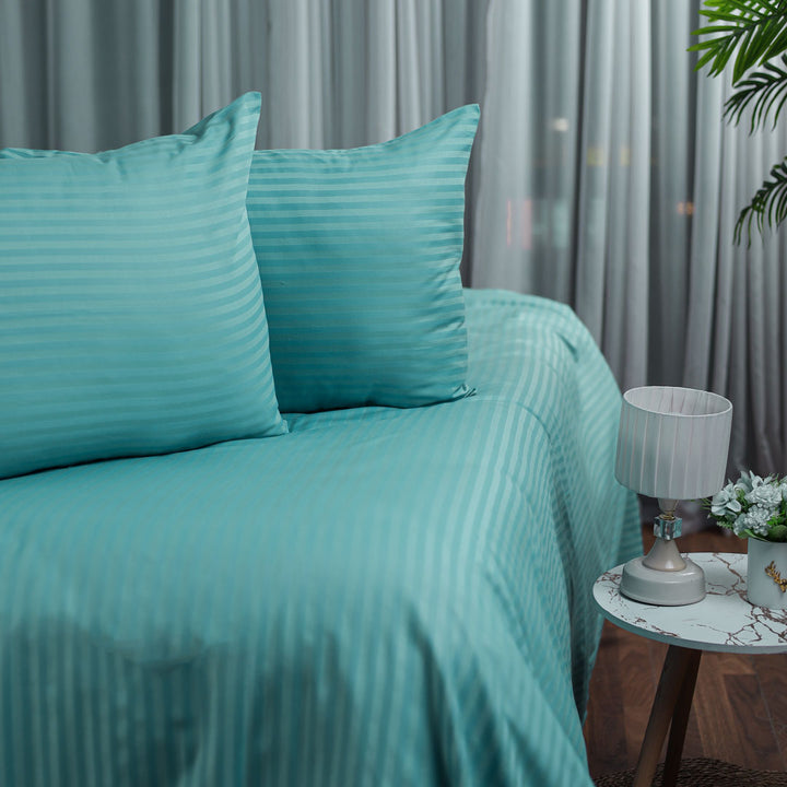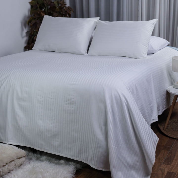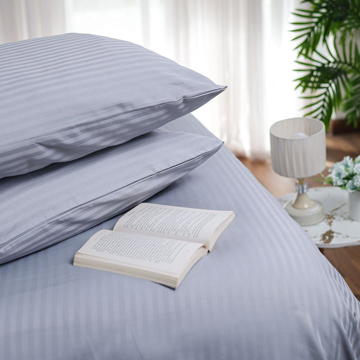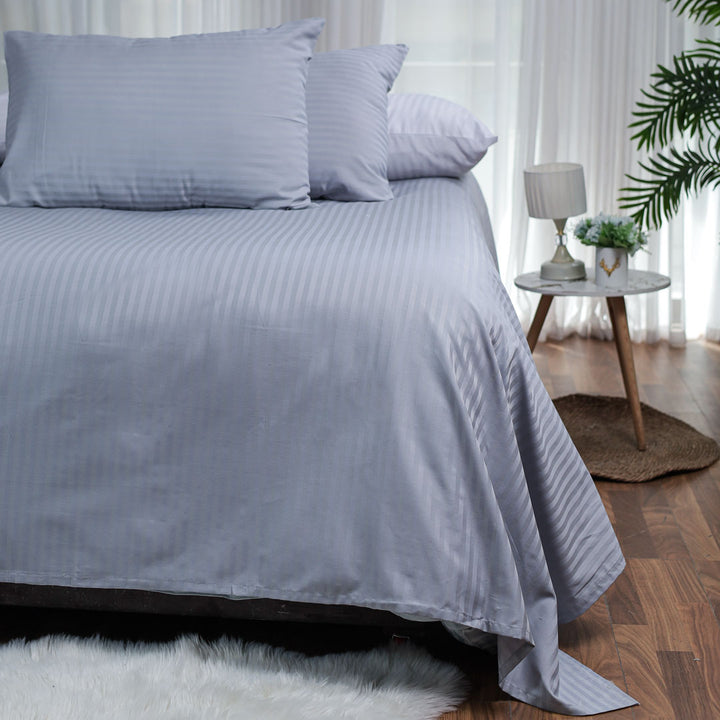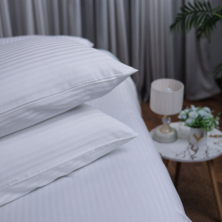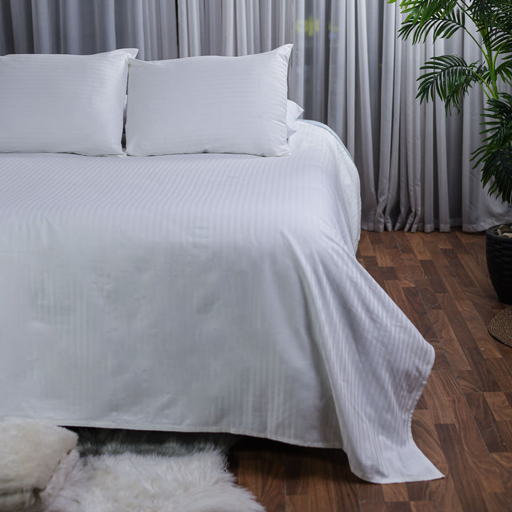 Fitted sheet with soft fabric and elegant stripe pattern, adding a modern look and a luxurious touch to your bed.