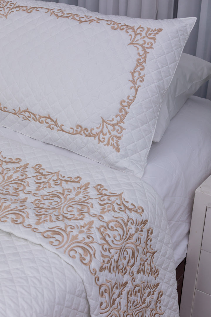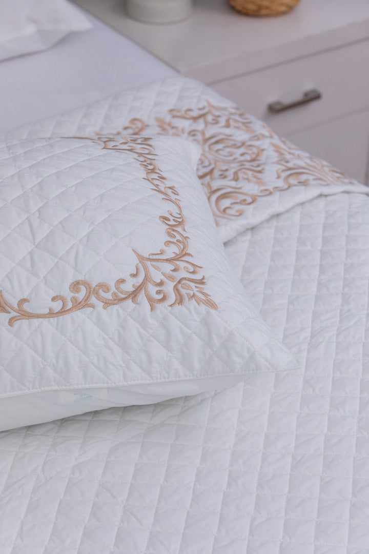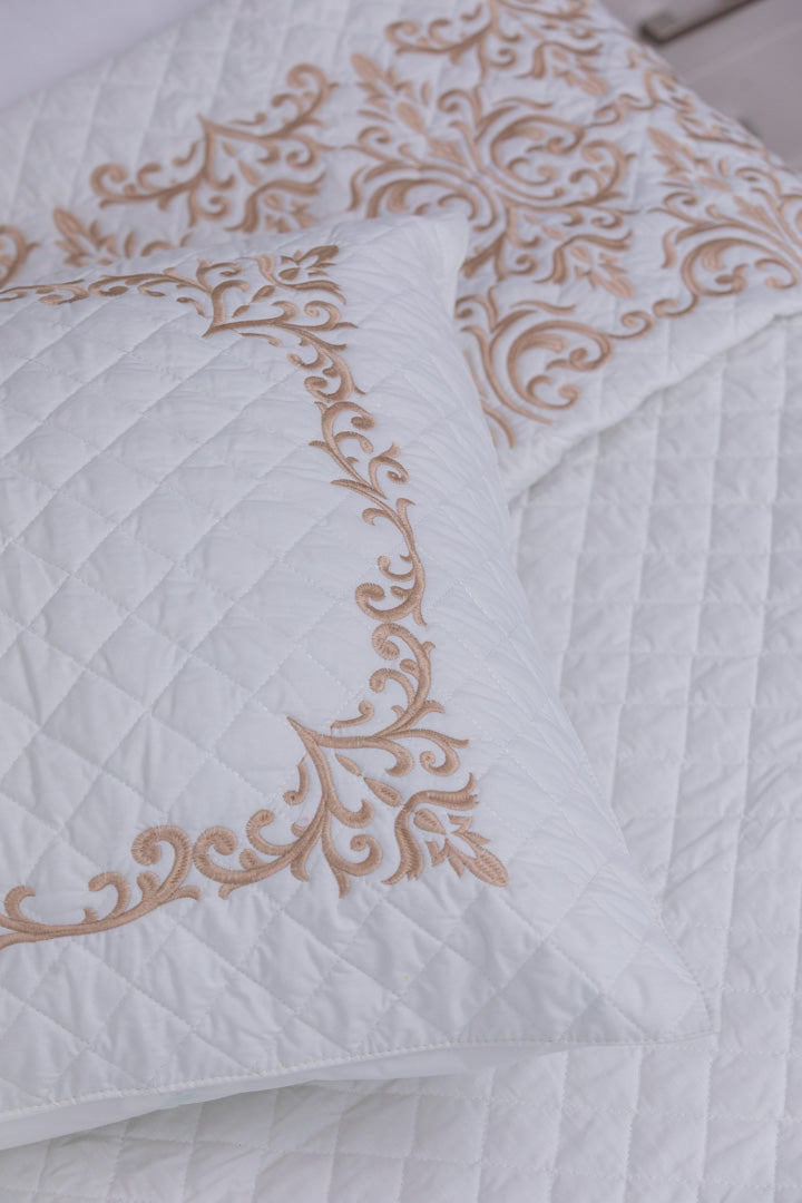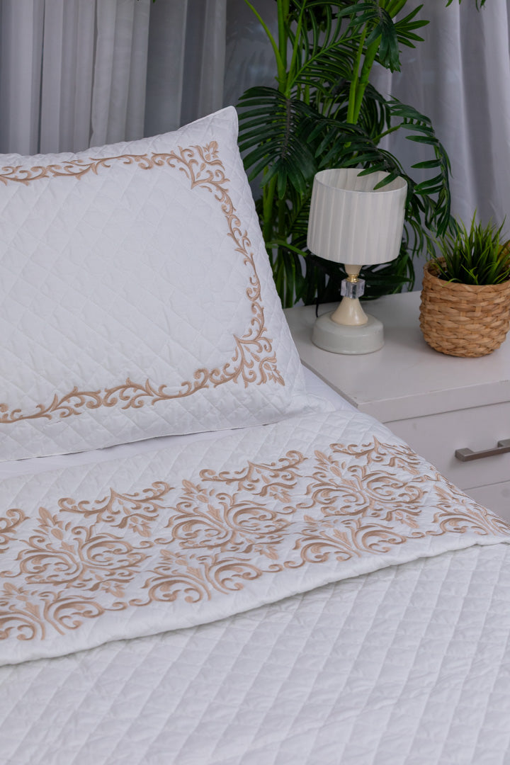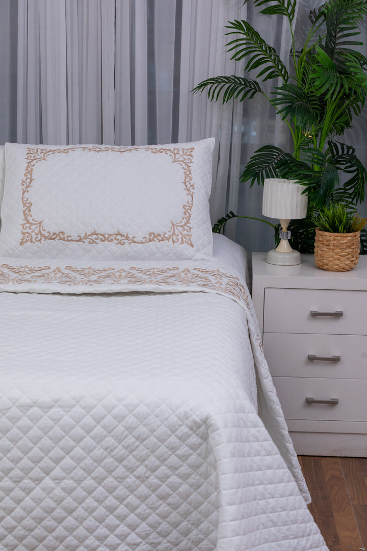 lavin Capitonné Coverlet is a true embodiment of royal luxury and refined sophistication, thoughtfully designed to bring a timeless touch of elegance to your bedroom. Made from high-quality percale cotton, it features a soft, breathable, and lightweight fabric that ensures exceptional comfort and a soothing feel throughout the night. The elegant capitonné stitching, paired with intricate silk thread embroidery, adds an artistic and luxurious dimension to its design. Built to last, it resists pilling and maintains its smooth texture and rich appearance even after multiple washes. With colorfast properties and easy-care fabric, it stays vibrant and fresh like new.
