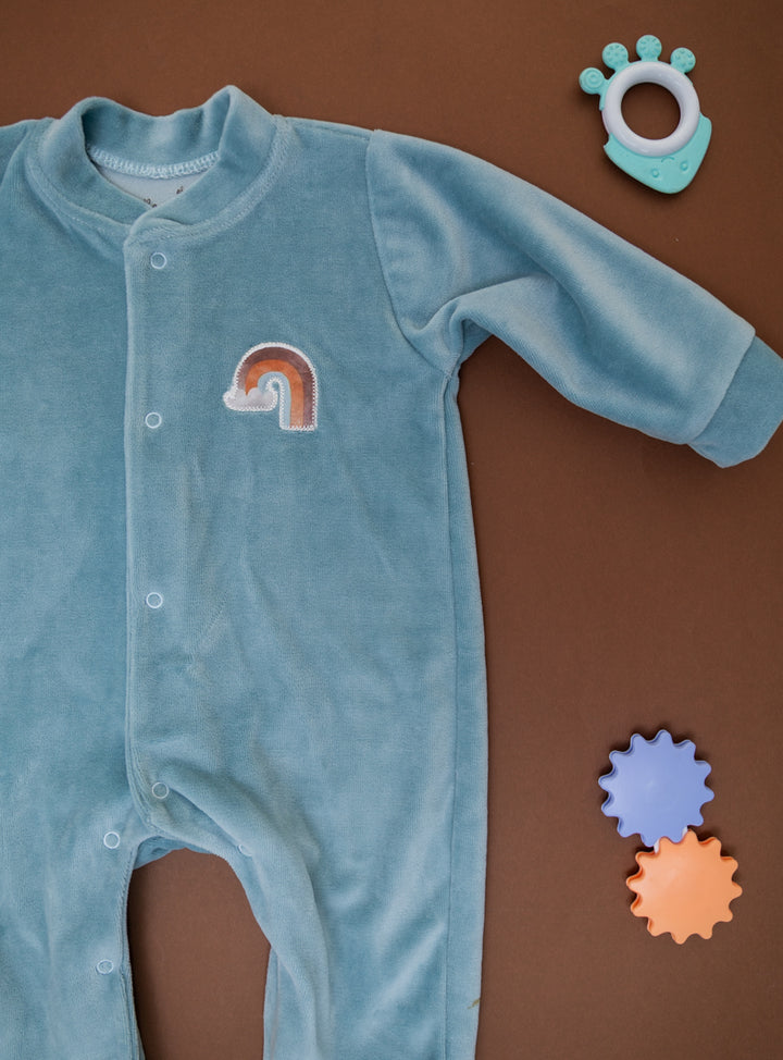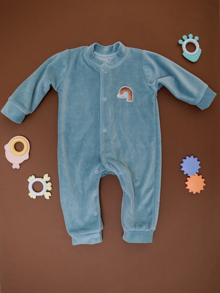 Soft and cozy velvet romper designed to keep your baby warm and comfortable during cold days.