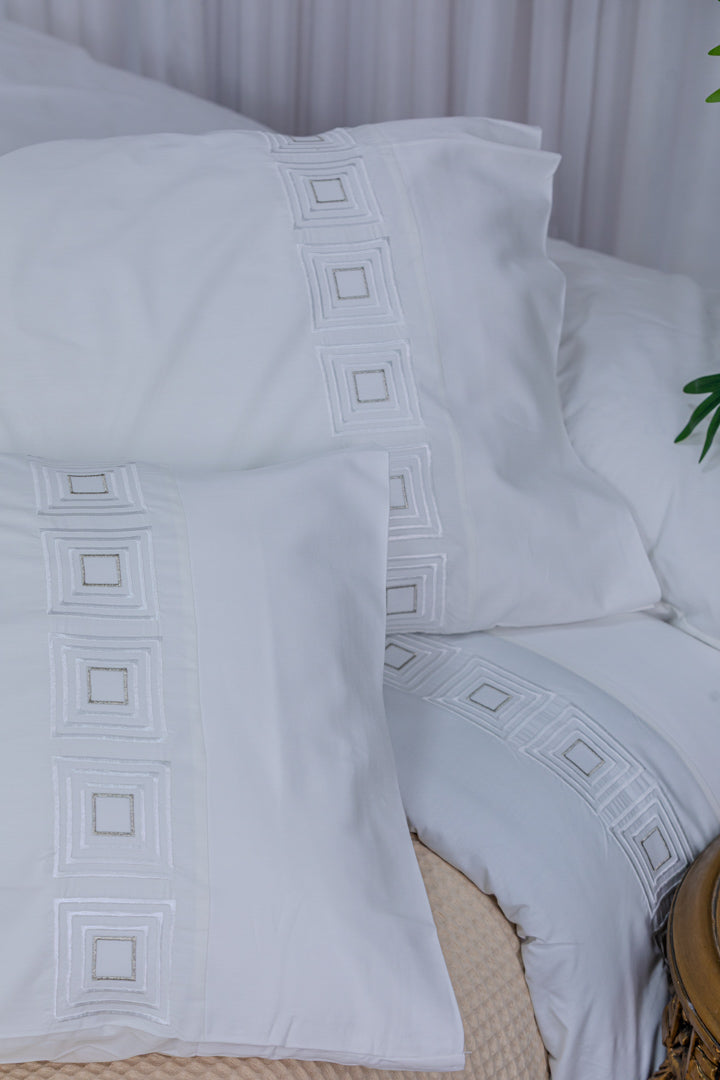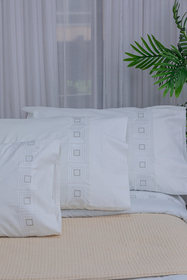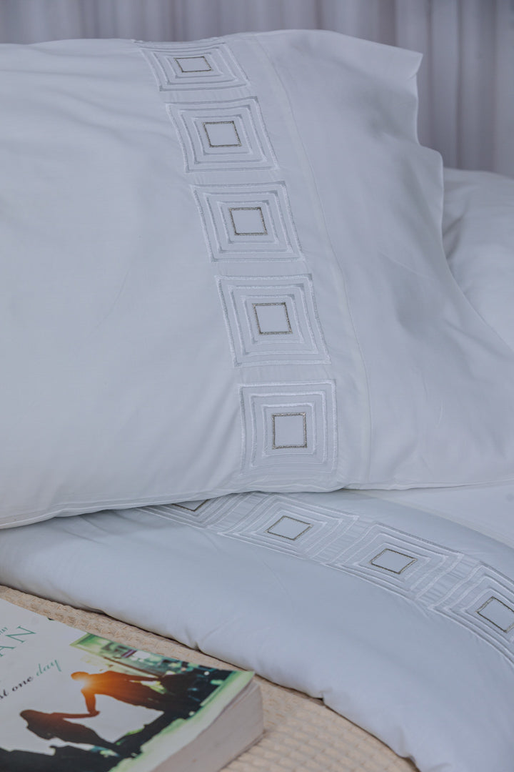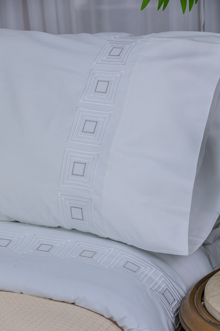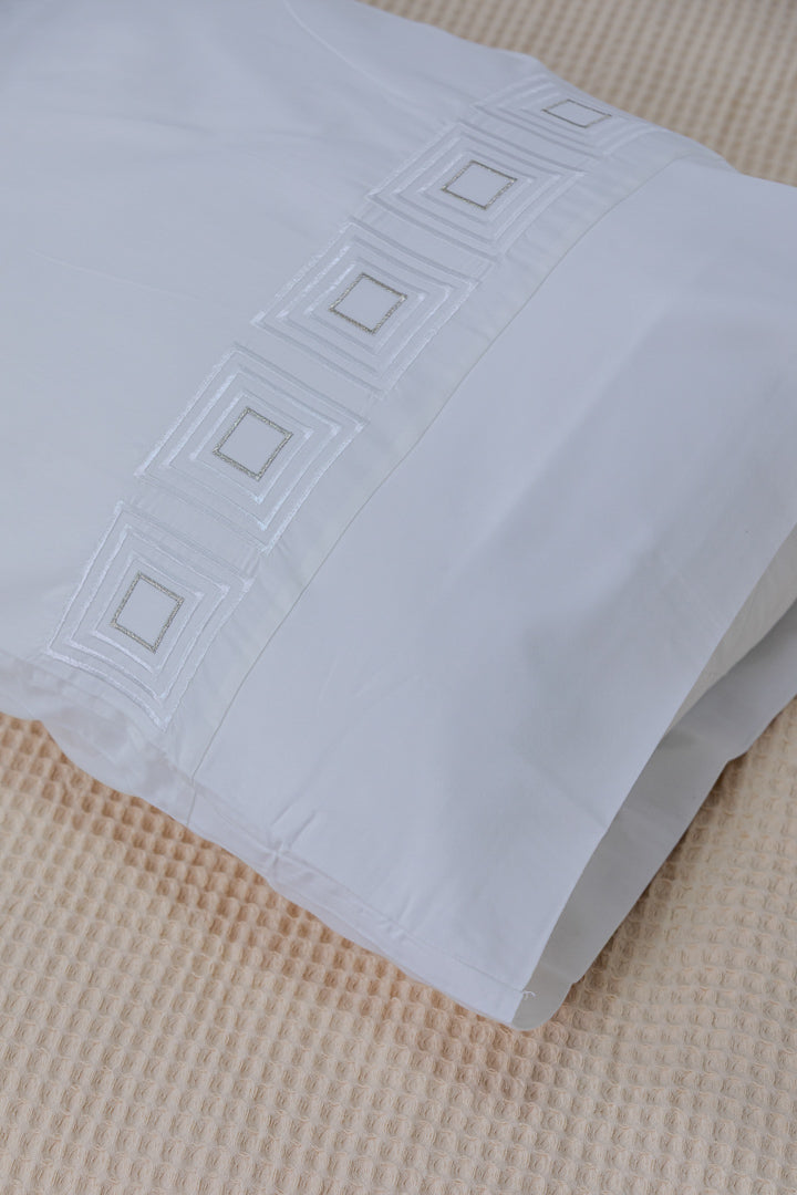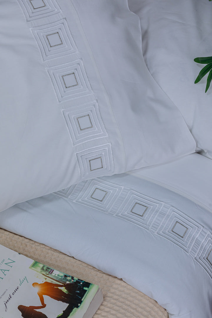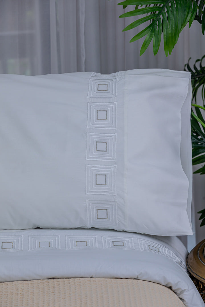 A luxurious bedsheet crafted from high-quality percale cotton, offering an ultra-soft feel and exceptional comfort throughout the night, thanks to its lightweight and breathable fabric. Designed with durable material that resists pilling, ensuring long-lasting smoothness and an elegant appearance even after repeated washing. Adorned with delicate silk thread embroidery, it adds a sophisticated and luxurious touch to your bedroom. With its colorfast properties and easy maintenance, this bedsheet remains vibrant and fresh, making it the perfect choice for those who seek both elegance and durability.