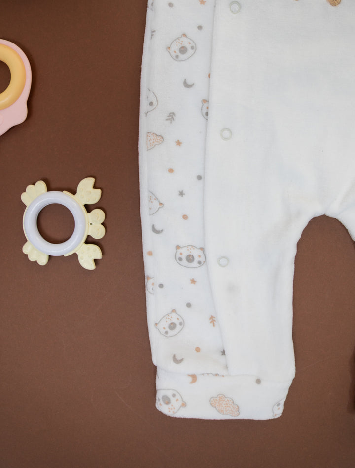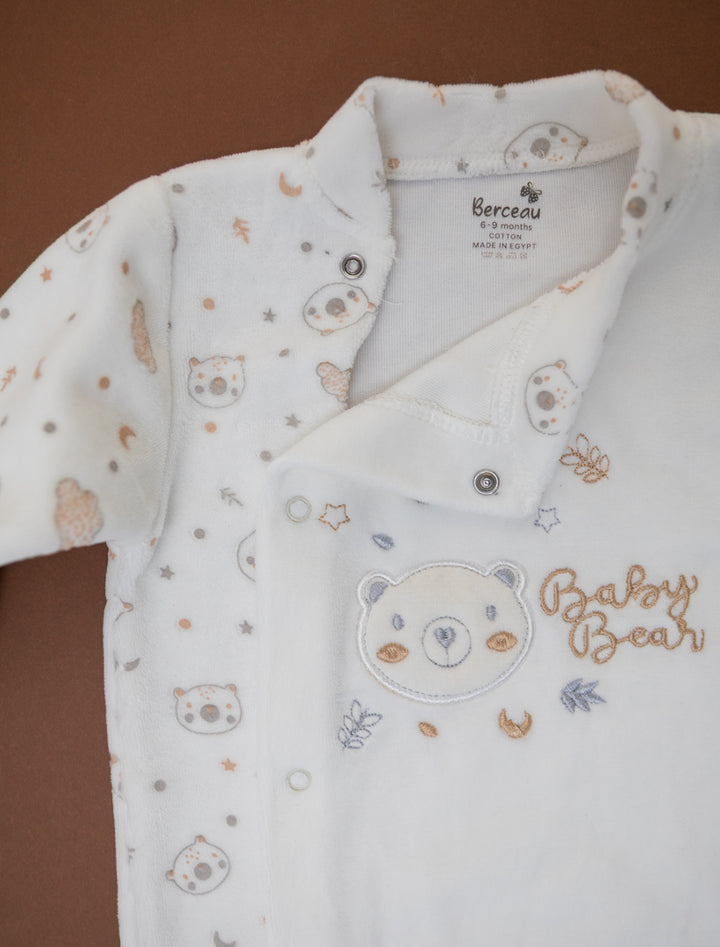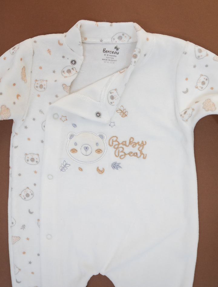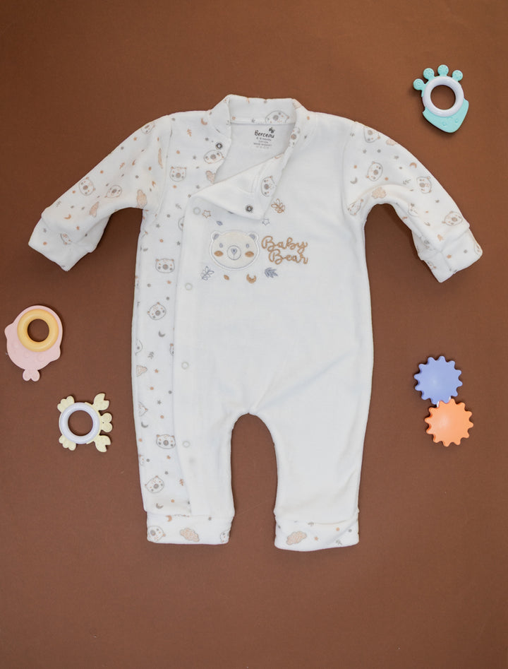 Soft and cozy velvet romper designed to keep your baby warm and comfortable during cold days.