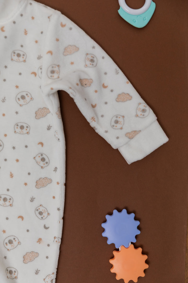 Soft and cozy velvet romper designed to keep your baby warm and comfortable during cold days.